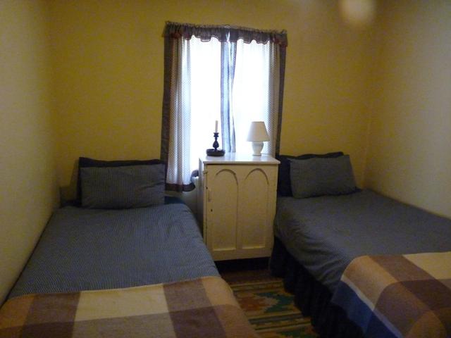 There are three bedrooms in this cottage. The main bedroom includes a shower and there is a shared bathroom with a bath for the rest of the guests. A lounge and a dining area is available to all and the kitchen is equipped with a stove, a fridge and a microwave.