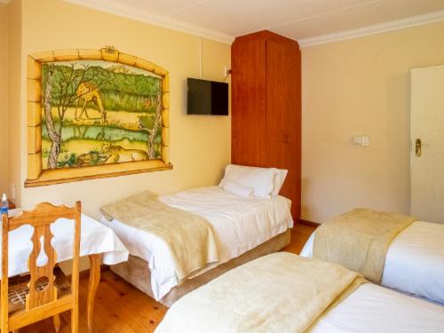 Where country and city meet - this is Eikenhof Country Guesthouse and B&B.It doesn't get much better than this.We have created a haven of peace and tranquility for the traveler and tourist alike.If you are on a business trip, attending a conference or even just traveling through.We are conveniently situated on a 21000 sq. m agricultural holding so you get that feeling of wide open spaces and yet are well aware of the safety and security that has been set up for you. A crystal clear swimming pool welcomes you to relax and enjoy yourself. We have a treed lawn of about 500