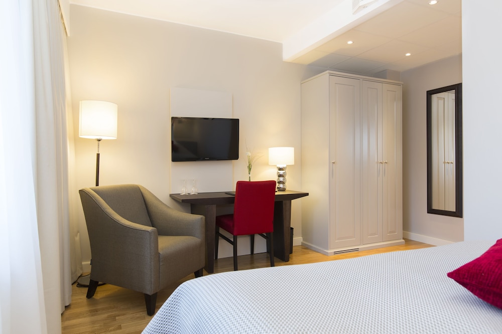 Elite Stadshotellet Karlstad is one of the country´s most beautiful hotels and is centrally located by the riverside of Klarälven close to shopping, restaurants and communications. The hotel offers 138 modern and tastefully decorated rooms with high ceilings, free Wi-Fi and cable TV. The English-style Bishop's Arms Pub offers a large selection of beer, whiskey and light meals. A breakfast buffet is served in the beautiful “Vintermatsalen”. In summertime you can enjoy your breakfast outside. Karlstad is situated in between Oslo, Gothenburg and Stockholm close to the lake Vänern.At Elite Stadshotellet we can help you to arrange successful meetings and corporate events. Our conference facilities are modern and functional with high standard and full service.