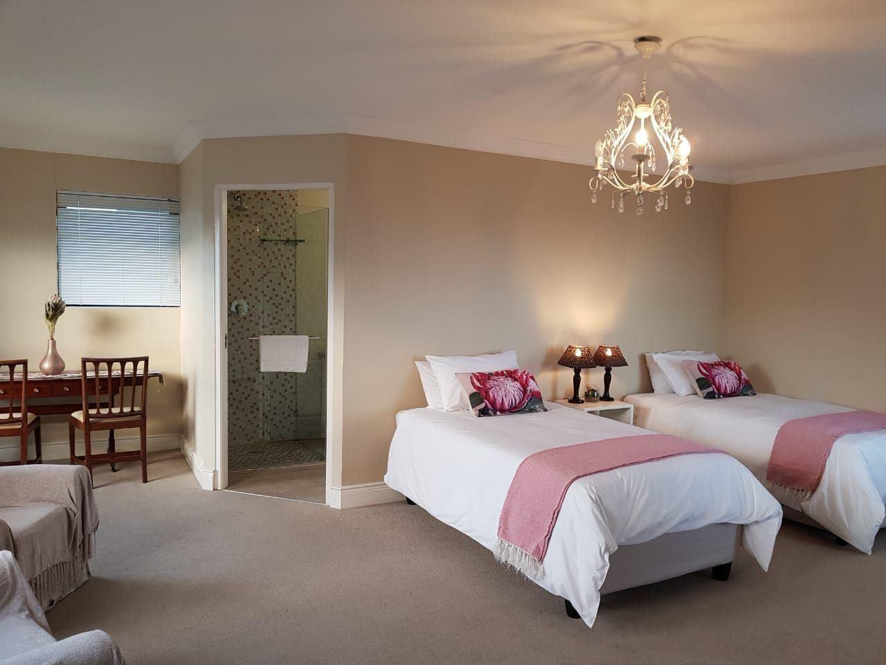Emerald Views welcomes you to serene Belvedere (Noordhoek). With all needed amenities in four rooms, you will leave feeling relaxed and truly at ease.The house comprises four bedrooms sleeping eight guests in total. The main bedroom is fitted with a king-size bed. The second and third bedrooms have two single beds each. The fourth bedroom has a double bed. All bedrooms have a full en-suite bathroom which has been elegantly tiled with an exquisite bath. The kitchen is well equipped for self-catering. The lounge area has DStv and Wi-Fi. Mountain, s