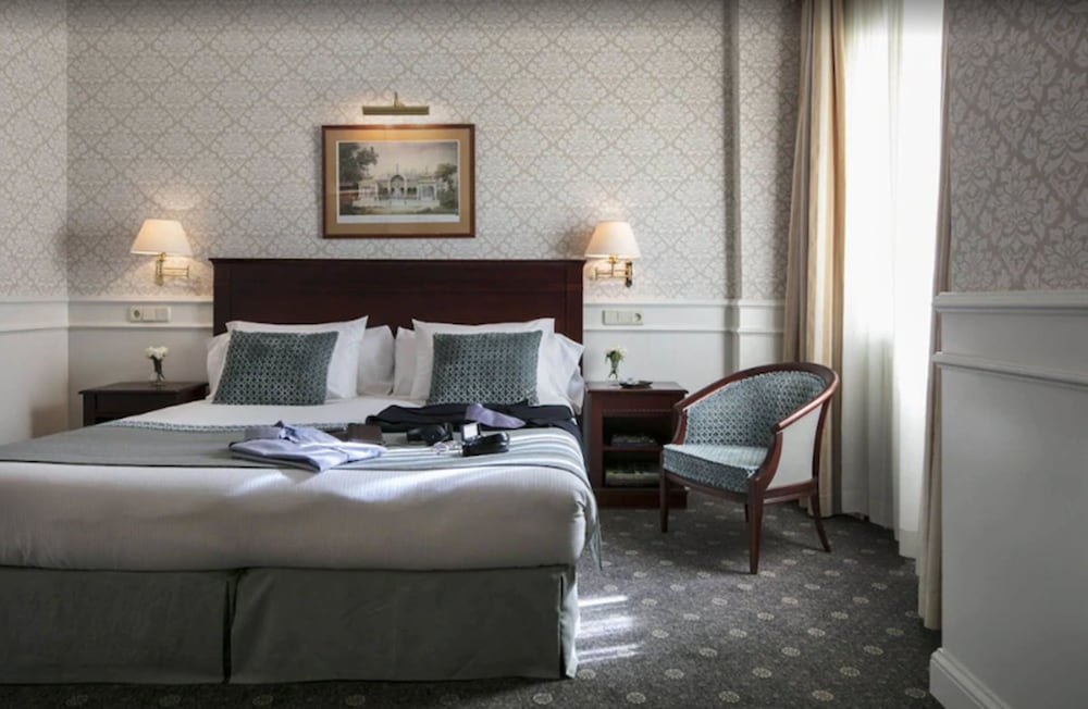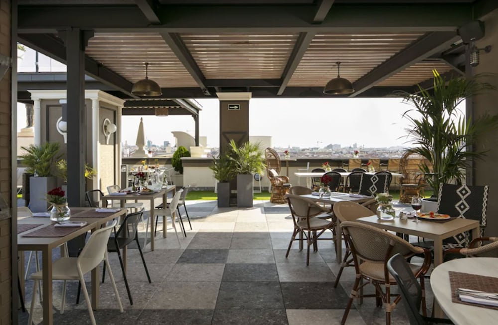 Facilities and services include a rooftop pool, breakfast room, bar, elevator, parking (extra charge), business center, wireless Internet access (extra charge), meeting rooms, fitness center, sauna and 24-hour reception.Rooms feature air conditioning, TV, telephone, hairdryer, safe and mini bar. ** The swimming pool is seasonal.Address: Gran Via 53, 28013 Madrid, Spain.