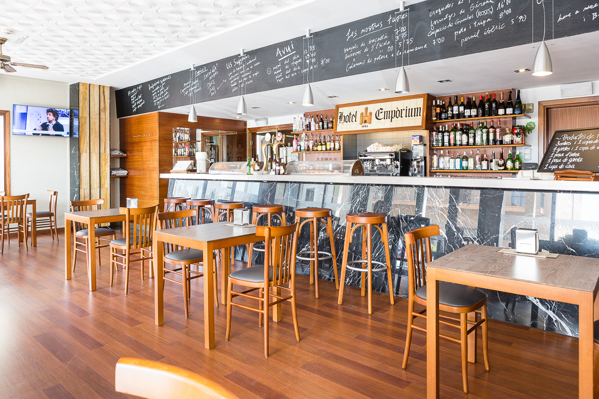 The Hotel Gastronomic Empòrium is a hotel owned and managed by a family; it is located at the historic centre of the medieval town Castelló d'Empúries, in Empordà region. It has a gastronomic Restaurant certificated by a Sol Repsol, Étoile Michelin and a prix for its large wine list.The Hotel – Restaurant Empòrium is engaged with Empordà region, for that reason it organizes wine tasting and visits to wine cellars of the region, as well as it prepares all type of routes and itineraries to discover paradisiacal and idyllic small bays, to get lose at the paths of the Aiguamolls Natural Park and Cap de Creus Natural Park and to admire all its patrimonial inheritance. Thanks to its excellent location the Hotel is the perfect place to make a break to know all the territory.Hotel Empòrium rooms are illuminated and comfortable. All of them have wireless connexion to Internet and satellite TV. The hotel also has a warm room full equipped and a coffee bar where beverage and aperitifs are served all day. We recommend you to try the tapas menu!