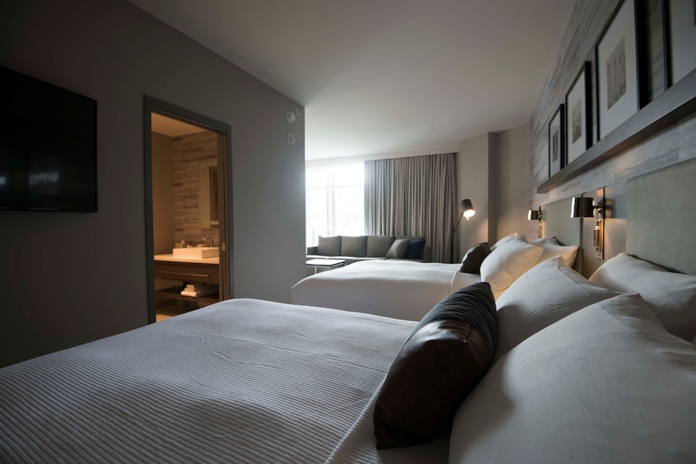 When you stay at Entourage sur-le-Lac in Lac Beauport, you'll be on the beach and convenient to Le Relais. This 4-star hotel is within the vicinity of Golf Royal Charbourg and Alpin Golf Club. Make yourself at home in one of the 166 individually decorated guestrooms, featuring refrigerators and microwaves. Your pillowtop bed comes with down comforters and Egyptian cotton sheets. Rooms have private balconies. 55-inch plasma televisions with cable programming provide entertainment, while complimentary wireless Internet access keeps you connected. Private bathrooms with showers feature designer toiletries and hair dryers. Don't miss out on the many recreational opportunities, including a health club, an outdoor pool, and a spa tub. This hotel also features complimentary wireless Internet access, concierge services, and babysitting/childcare (surcharge). Enjoy a meal at L'Ilot repère gourmand, or stay in and take advantage of the hotel's room service (during limited hours). Wrap up your day with a drink at the bar/lounge. Local cuisine breakfasts are available daily from 7 AM to noon for a fee. Featured amenities include a computer station, express check-out, and complimentary newspapers in the lobby. Event facilities at this hotel consist of a conference center and meeting rooms. Free self parking is available onsite.