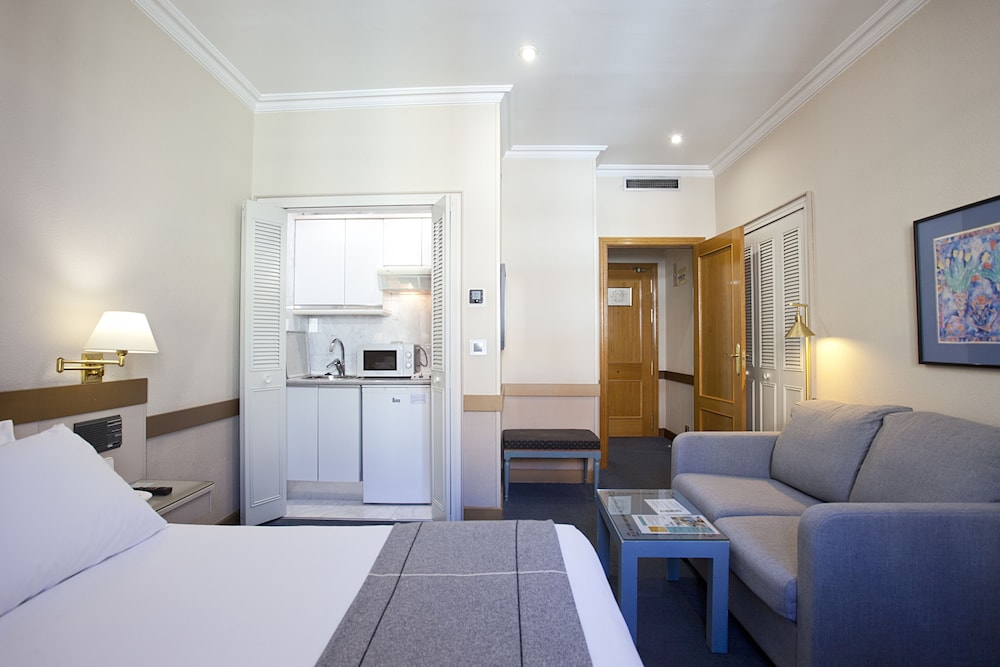 Espahotel Gran Vía Madrid is located next to Plaza España and 800 metres from Puerta del Sol in Madrid. It offers studio apartments with Wi-fi connection and satellite TV.The apartments at Espahotel Gran Via have carpeted floors and an en suite bathroom with hairdryer and amenities. There is also a kitchenette with a fridge and a microwave is available upon request. They all have central heating and air conditioning.The complex has a 24-hour reception and offers car rental laundry services. Room service is also available.Espahotel Gran Vía is centrally located: the Royal Palace and Theatre is just 500 metres away from the hotel and the shopping street of Fuencarral is 600 metres away.