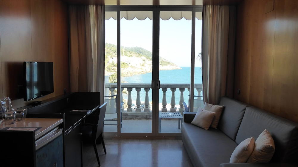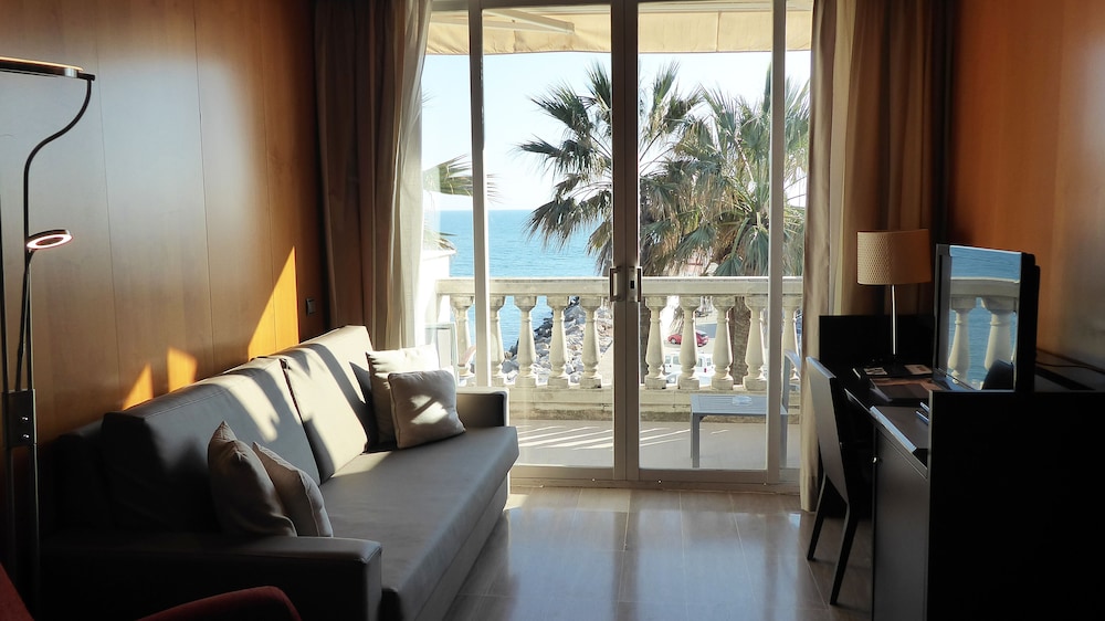 Overlooking the sea, this marvellous hotel in one of the most beautiful and picturesque sites of Sitges, in Port d'Aiguadolç, is the ideal choice of accommodation either when travelling for holidays or on business. At this position, apart from the beaches its visitors can also go trekking at the mountains or sightseeing at this picturesque fishing town famous for its lively nightlife and many entertainment options available. Travellers can easily get to Barcelona's airport, which is at a 30 minutes' drive, and discover nearby nice towns such as Sant Pere de Ribes or Castelldefels. At the hotel's rooms visitors can live a completely new experience thanks to their decoration and luminosity, as they are painted by artists and have scenic views of the sea. Guests can indulge in a delicious meal at the on-site restaurant or celebrate their business meetings at the hotel's facilities.