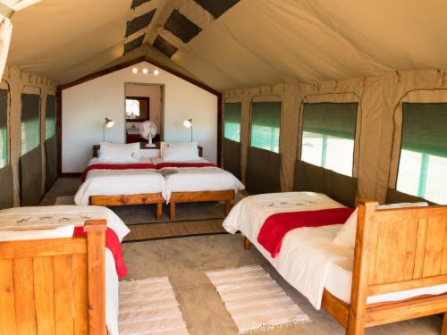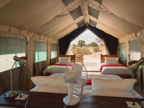 Located 10 kilometers south of the Andersson Gate, Gondwana Collection Etosha Safari Camping2Go is home to eight self-catering tents. Each tent is equipped with four beds, an en-suite bathroom and shower while the campsite facilities include a fully equipped kitchen, veranda, grill and a fire pit. Guests staying at the campsite can enjoy a cosy evening around the fire pit, or experience an evening of live music at the Oshebeena Bar near Etosha Safari Camp or indulge in a delicious meal at Okambashu Restaurant. Guests are invited to partake in activities which includes game drives or simply abs