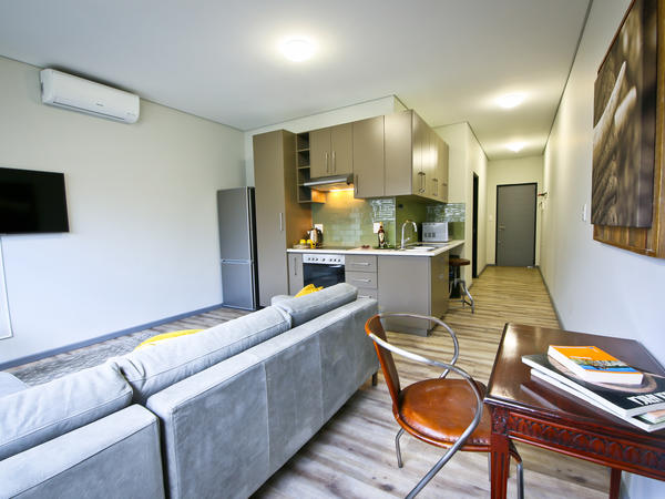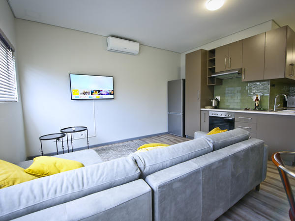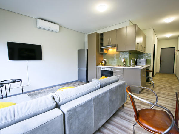 Welcome to FaanBergh AccommodationFaanBergh Accommodation offers unique accommodation options for both short and long-term stays for up to 4 people. Offering large, modern and high-quality units, with features such as: Spacious built in cupboards; Bathroom with a shower and toilet; Open plan lounge/dining area with seating for 4 people; Full kitchen with crockery and cutlery; Flat Screen TV with Netflix enabled; Free Wi-Fi; Balcony for all your sun rising and sundowner views.FaanBergh Accommodation is situated in the heart of Windhoek, the capital of Namibia. It offers 24-hour security and a t