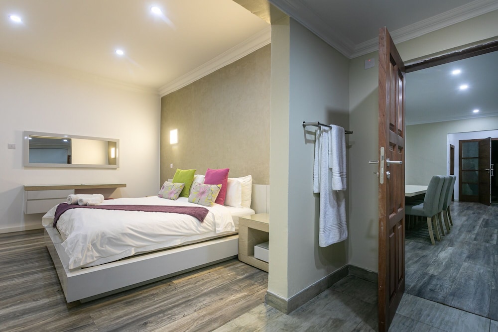 Fallsway Villas are very unique and in a class of their own. The villas are beautifully furnished, professionally operated and meticulously serviced with attention given to every detail and design. Indeed our services are of exceptionally high standards and quality which will make your stay with us not only a memorable one, but a very comfortable one too.Each villa features three large bedrooms, with the master bedroom being en-suite. The beds are made from beautiful, hardwood mahogany and antique oak timber with quality mattresses. Linen and towels are also provided. There is