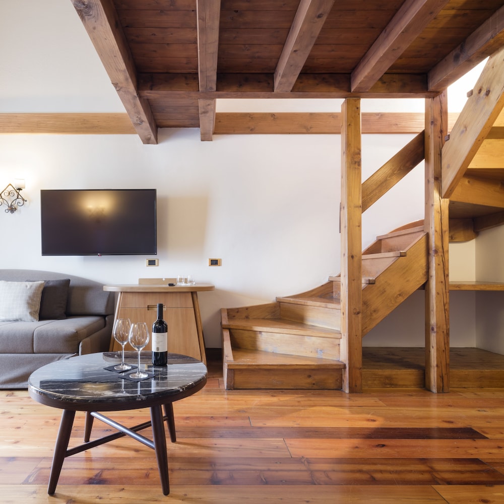 This hotel in Cortina d'Ampezzo is situated right in front of an historic Olympic ski jump and has incomparable views of the most beautiful mountains of the Dolomites: Faloria, Cristallo, Tofane and Cinque Torri. It is 2 km from Cortina d'Ampezzo city centre where there are shops, bars, pubs, nightspots and skiing areas. The hotel has managed to protect its surrounding natural beauty over the centuries, thanks to its strong pro-environment policy. The hotel looks after local Alpine flora and fauna and is also responsible for repopulating endangered species.Natural beauty and tranquillity are just 2 attributes of this hotel's location, which was built in keeping with the typical local architecture. This family-friendly hotel is divided into 2 main buildings with the guest suites, which are joined together by a central building where there are public areas, such as the main hall, meeting rooms, restaurant, parlour and bar. Further facilities include lift access and a 24-hour reception and check-out service. Internet access is provided and guests can take advantage of the hotel's room and laundry services (fees apply). Parking facilities are available for guests arriving by car.The suites are very spacious and welcoming. They have 2 rooms and 2 or more bathrooms. The furnishings are elegant with beautiful fabrics used for the curtains and the typical boiseries on the lower walls. Even the bathroom tiling and fittings are of exceptional quality and beauty, such as the handmade cotto Veneto tiles. The suites on the top floors all have panoramic terraces and those on the ground floor all have a small private garden. In addition to a private bathroom with a hairdryer and a bath or shower, further features include a minibar, safe, satellite/cable TV, Internet access and a direct dial telephone. Central heating and a balcony/terrace also feature.