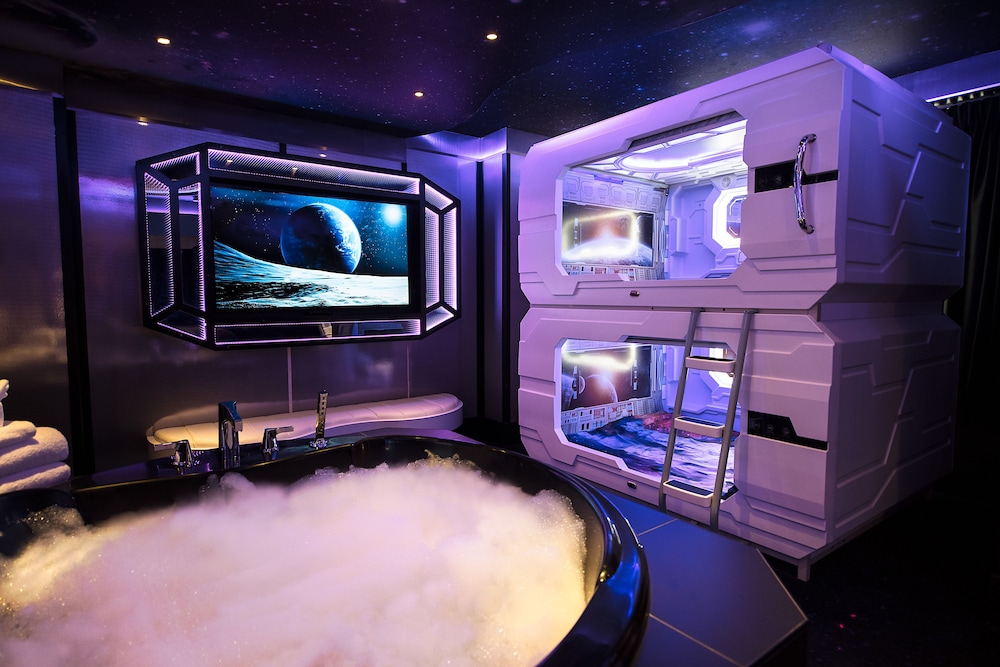 Facilities and services include parking, restaurant, bar, wireless Internet access, meeting room, 24 hour reception and elevator.Rooms feature jacuzzi, TV, wireless Internet access, mini fridge, bathroom, hairdryer, coffee maker, safe and air conditioning.Hollywood Luxury theme features dance pole and tantra chair.Igloo theme room features seating area.Address: 17700 - 87TH Avenue Northwest, T5T 2P7 Edmonton, Alberta, Canada.