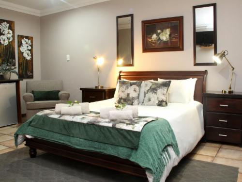 Feathers Guest House is a unique 4-star guesthouse, in the lazy town of Middleburg in Mpumalanga, situated next to the Middleburg Country Club and Golf estate, where all our guests are assured of superior accommodation and service.It is a lovely homestead, set peacefully in country surroundings, boasting a high standard of hospitality, luxury, comfort and fine cuisine. The ambience is suggestive of gracious and luxurious living, where patrons can relax at the heated pool during the summer months while the melodies of numerous bird species fill the exotic and beautifully landscaped