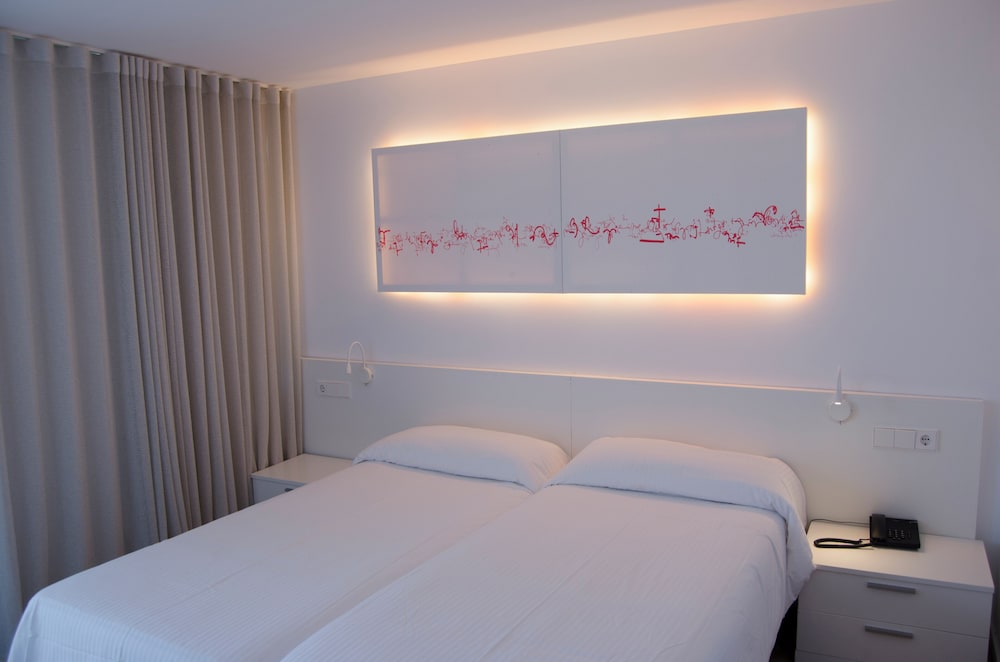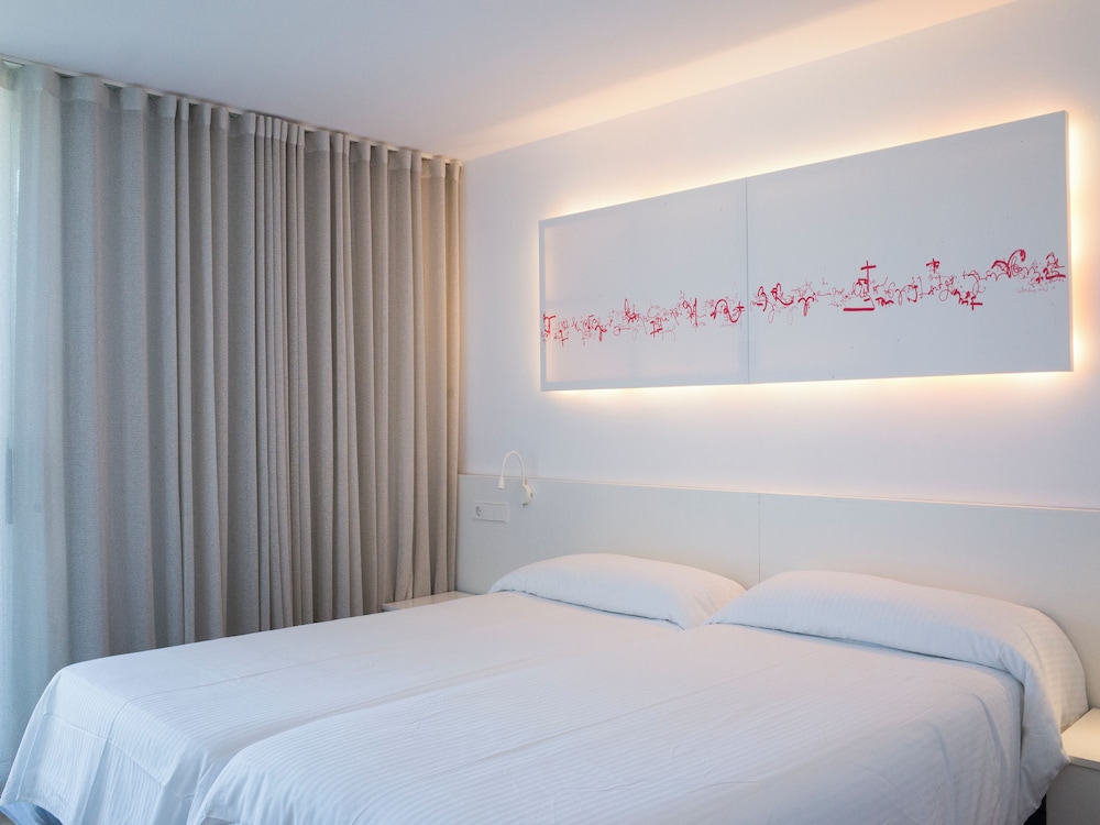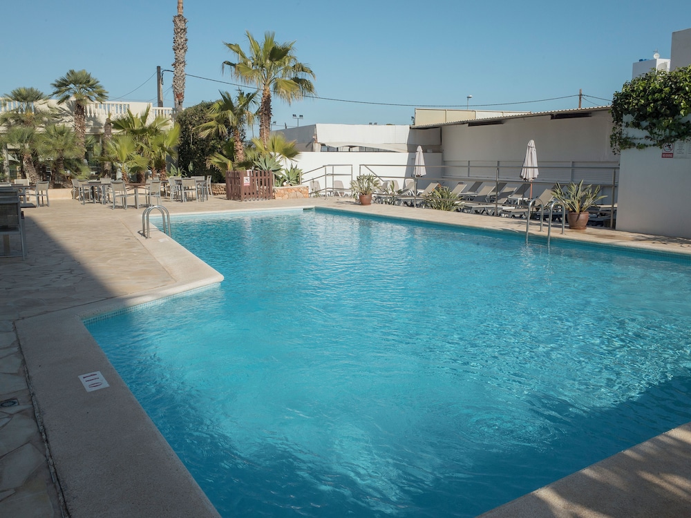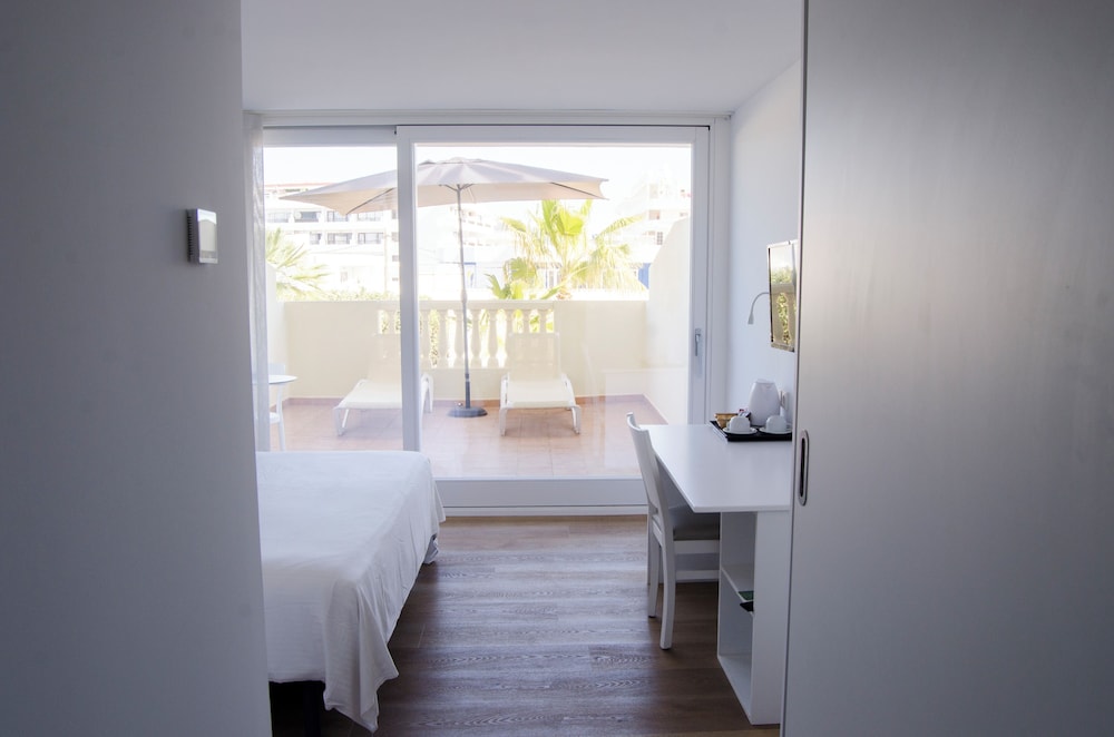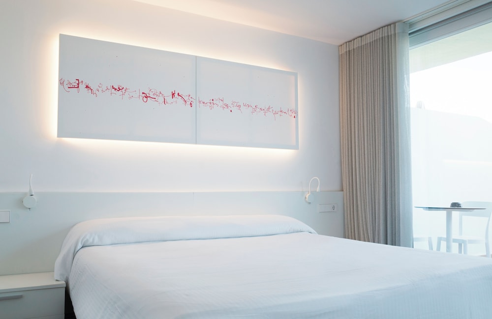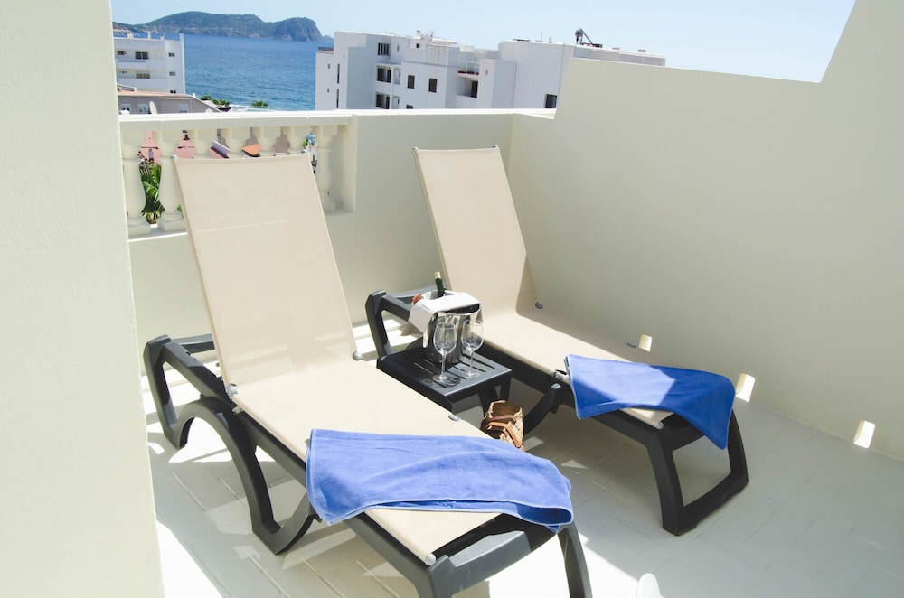 The magic of Ibiza is waiting for you in every corner of the FERGUS Paraíso Beach. Sun, turquoise waters, hidden coves, music and dancing day and night, handcrafts, gastronomy and pure Mediterranean. You will find it everything in this Adults Only hotel in Es Canar beach, near the fabulous Cala Martina cove and 100 metres away from the most famous hippie market of Ibiza. This hotel surrounded by a stunning natural setting will allow you to get lost in this paradise of sand and salt, rest on the beach, sail and get away from routine and stress, sleep in a customised accommodation, visit unique tourist attractions and discover that Ibiza is much more than festive nights till daybreak. The FERGUS Paraíso Beach is located in this fabulous setting ideal for romantic trips with your couple or for trips with friends, during which you will be able to enjoy endless leisure and adventure proposals. At the modern, spacious and pleasant FERGUS Paraíso Beach you will have all the necessary services and attentions proper of a 3-star boutique hotel in Ibiza with few rooms, quiet atmosphere and well-cared design. Restaurants, All Inclusive service, Digital Sky Sports Bar TV, solarium terrace, theme nights, professional shows, 24-hour attention in different languages, superior rooms with sea views…