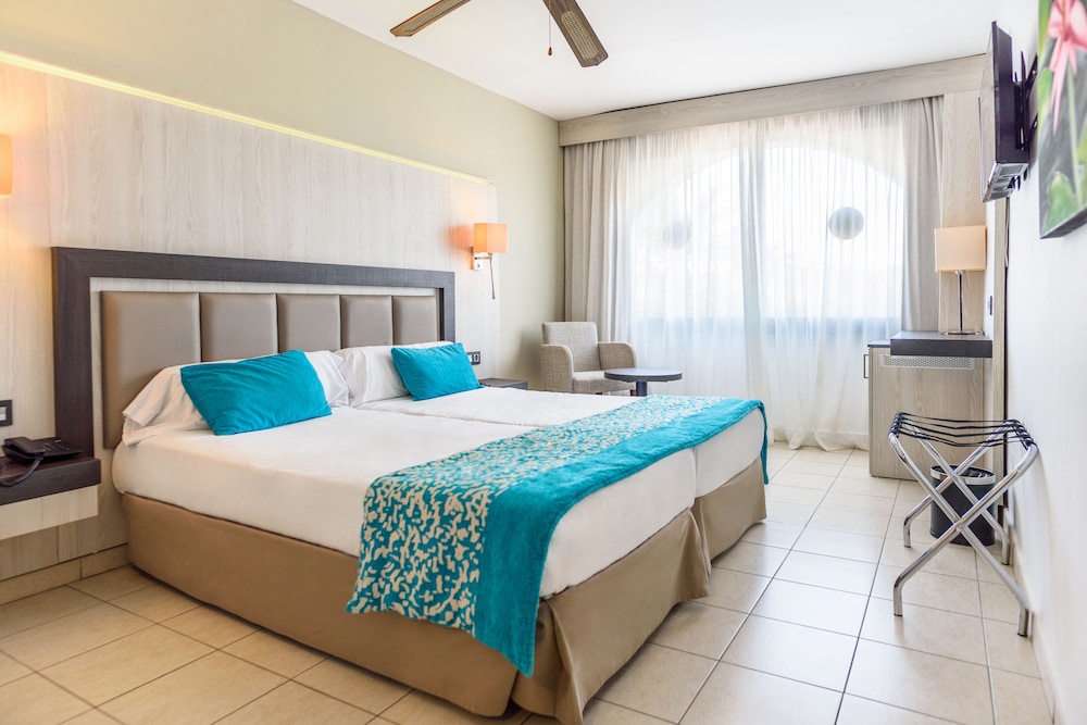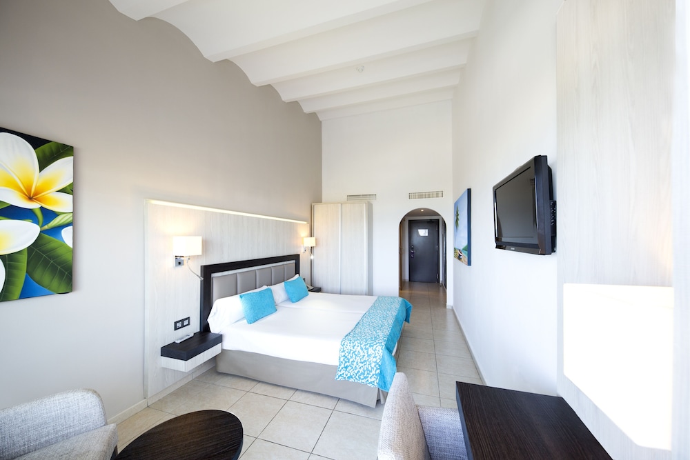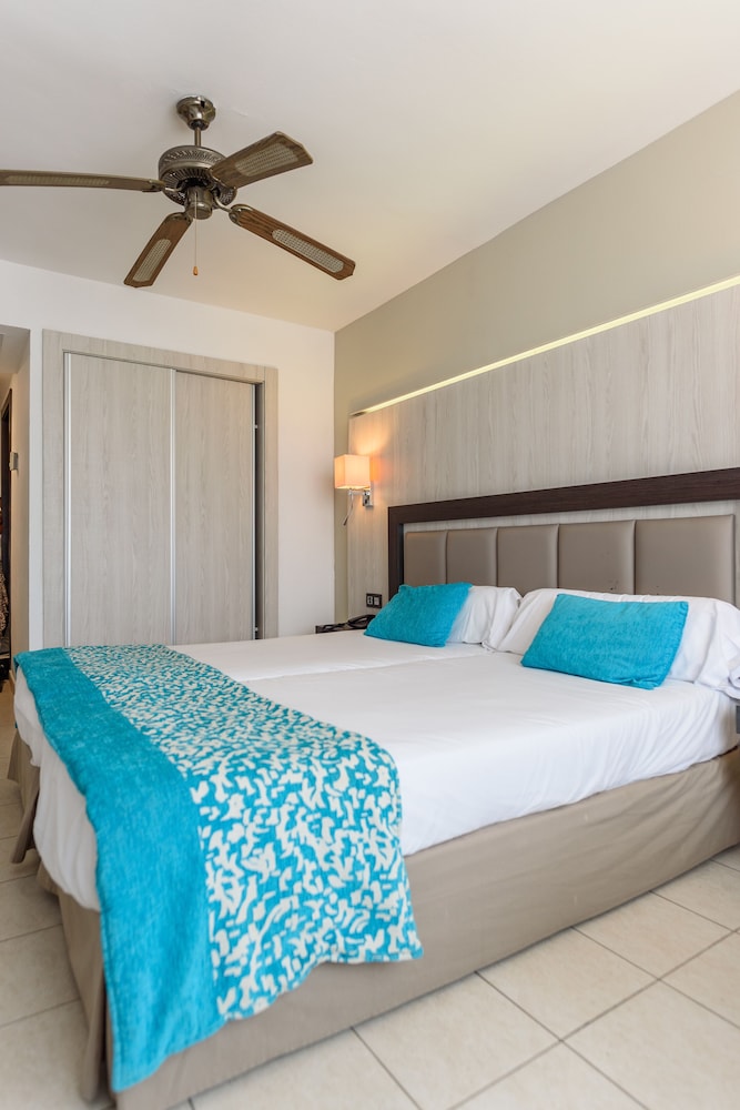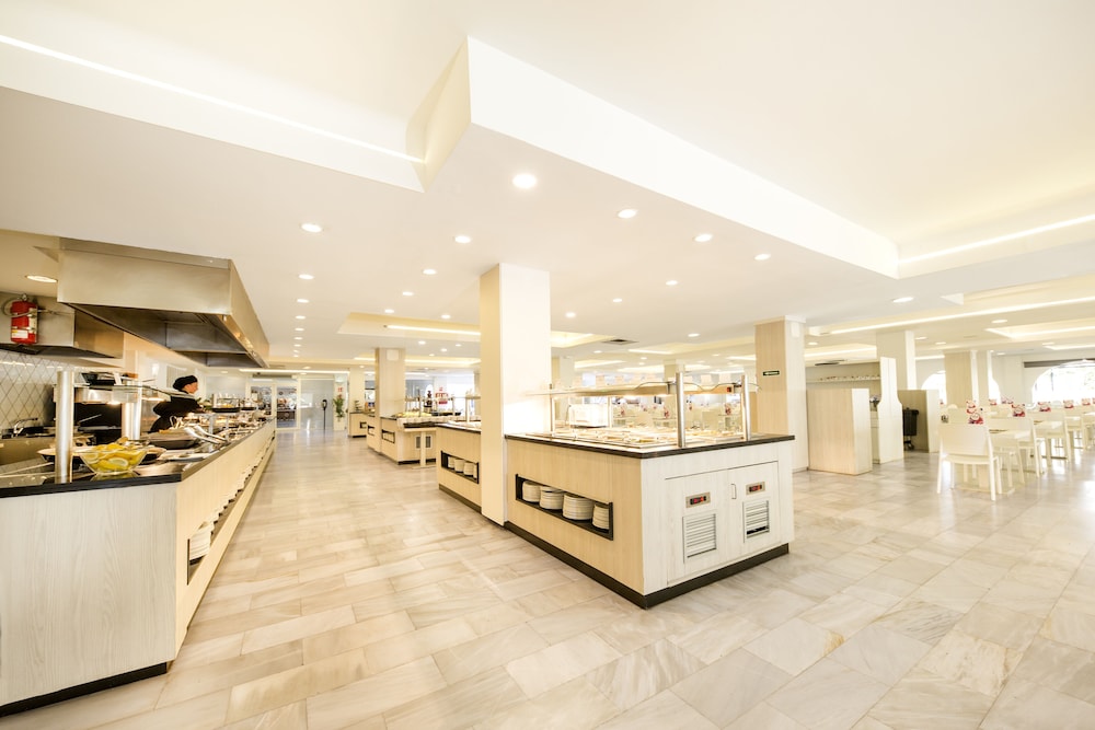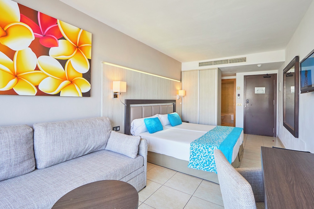 Facilities and services include a 24 hrs reception, wireless internet in public areas (extra charge), safety box at front desk (extra charge), restaurant, lobby bar, snack bar, pool bar, outdoor swimming pool, children's pool, children's playground, games zone, sun terrace, internet cornet (extra charge) and car parking.The rooms are equipped with air conditioning, TV (deposit required), telephone, mini refrigerator, hairdryer and balcony/terrace.** Please note that some of the above facilities may be closed due to weather / seasonal conditions.**Address: Ctra. Playa den Bossa s/n, 07817, Playa den Bossa, Ibiza, Spain.