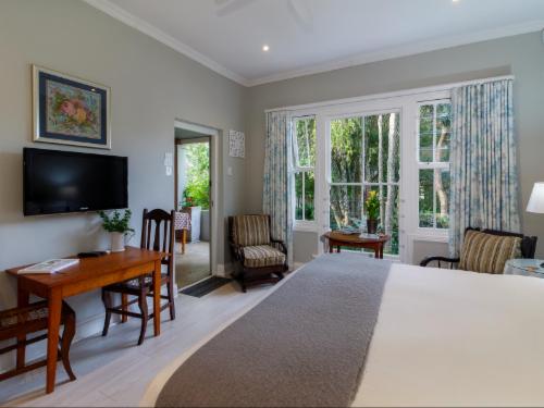 Fiddlewood Fields is a beautiful guest house, set in quiet, lush gardens in the city of Grahamstown in the Eastern Cape province of South Africa. Owned and managed by Kurt & Ros Schwechheimer, the accommodation options are suitable for individuals, couples, friends and families. We are located close to St Andrew's College, St Andrew's Prep, DSG and are a short drive away from Kingswood College and Rhodes University.All rooms contain extra length king-size, an en-suite bathroom with a shower and a bath, and the rooms are serviced daily.In addition, there is a comf