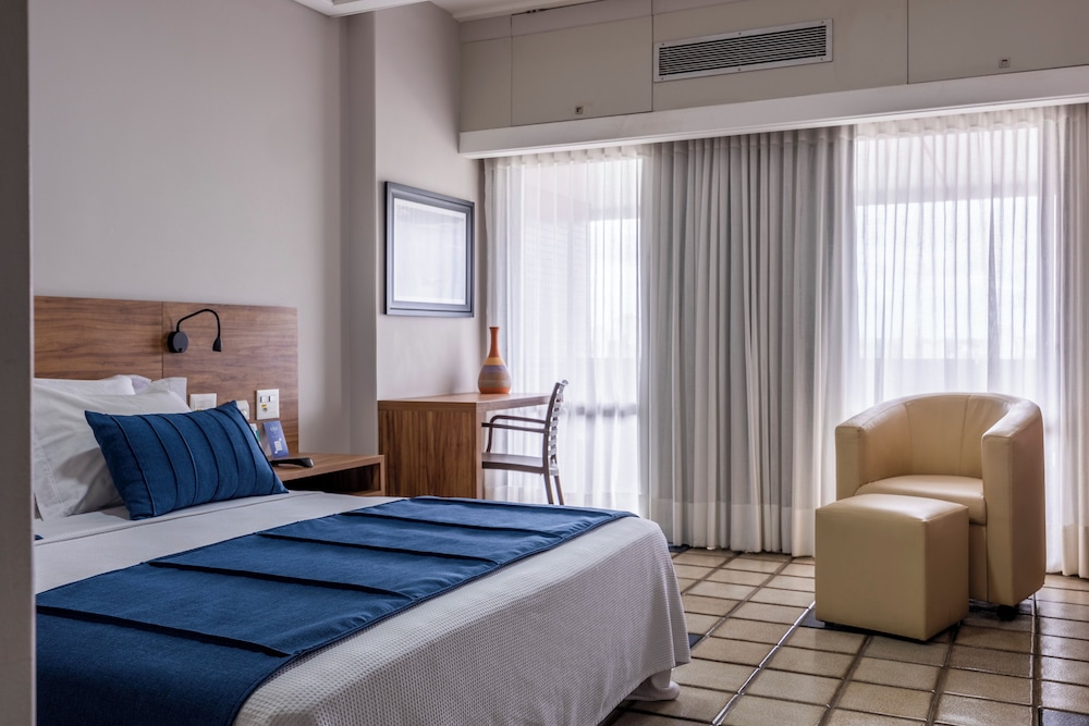 This 4 star hotel is located in the city centre of Salvador. It is a short drive away from the Pacience Beach. The Hotel has a coffee shop, an indoor swimming pool, an outdoor swimming pool and a fitness centre/gym. All 244 rooms are equipped with minibar, hairdryer, safe, ironing set and air conditioning.