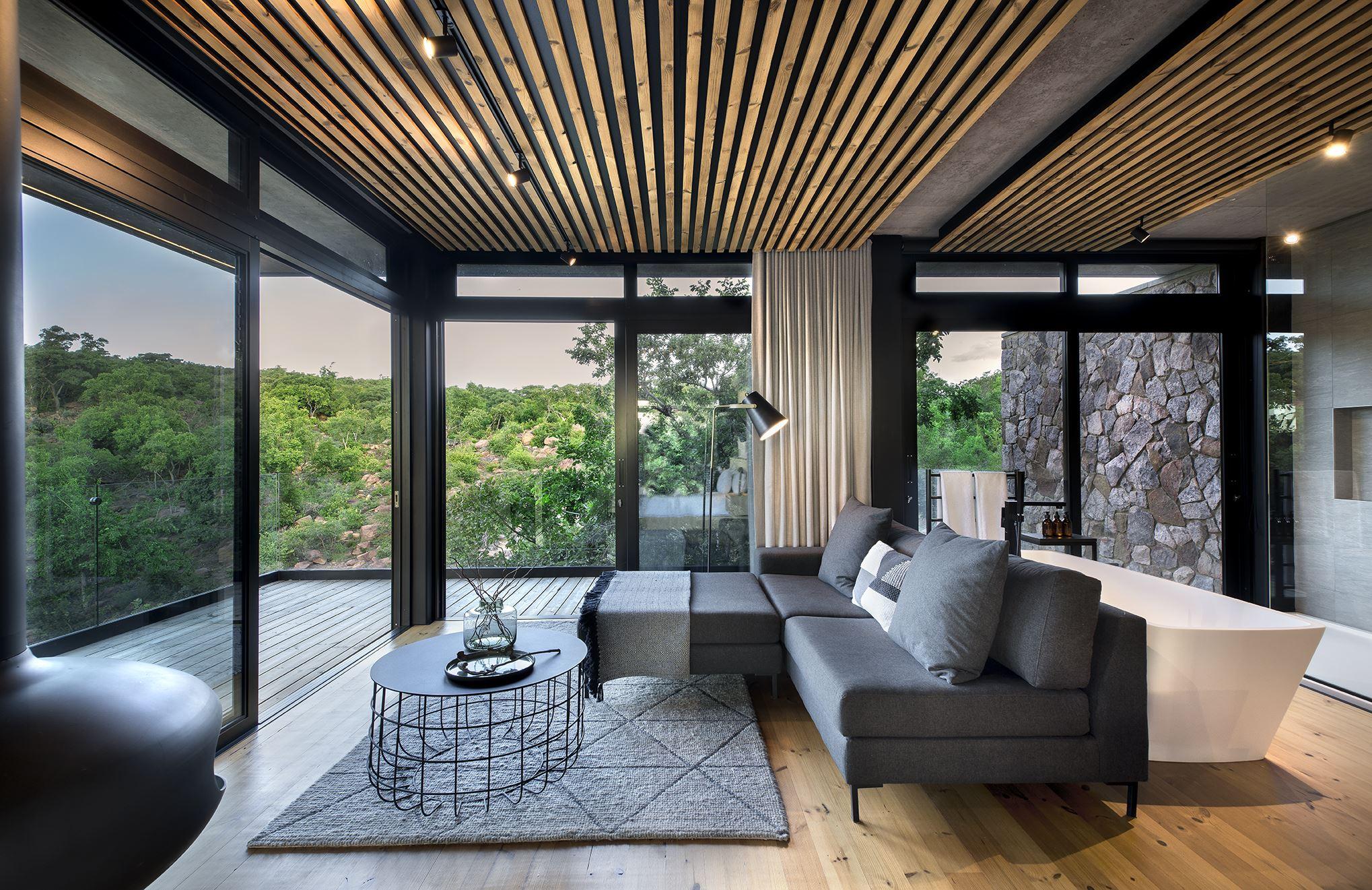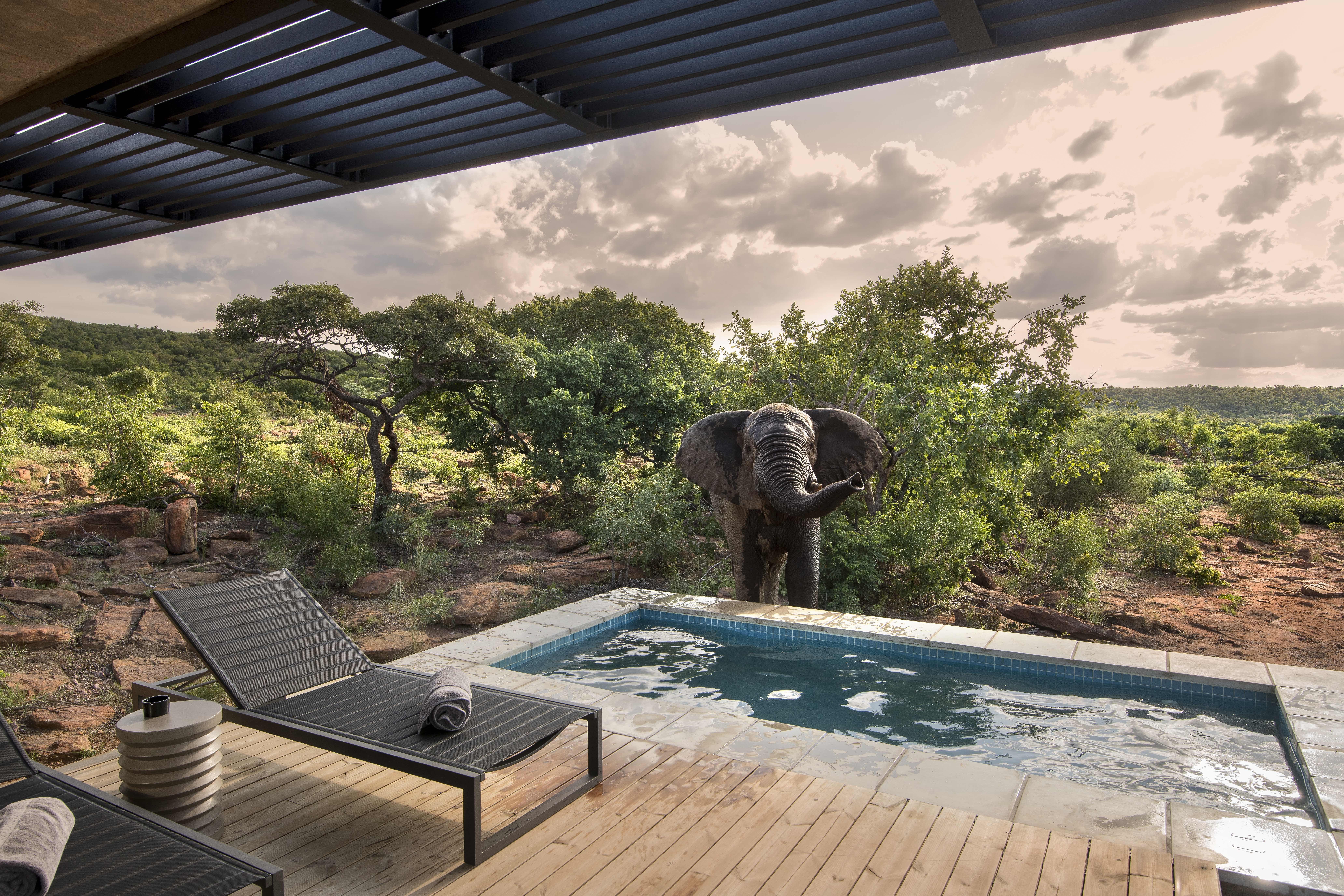 Situated three hours north of Johannesburg lies Fifty Seven Waterberg, a gem nestled in the heart of the Welgevonden Game Reserve and home to the Big Five in a malaria-free area. The Waterberg Biosphere Reserve was declared an official UNESCO World Heritage Site in 2001. This magnificent five-star establishment is synonymous with tranquility, solitude and luxury; not to mention the surroundings of the breath taking panoramic views of the Waterberg mountains. Guests can unwind next to the infinity pool that overlooks a shallow valley and mountain stream that flows to a waterhole. The ten spacious suites are placed strategically along the small hill to provide maximum privacy and intimacy. All are equipped with king-sized beds and relaxing private deck where you can unwind while listening to the birds sing. The honeymoon and luxury suites have their own private plunge pools a for the ultimate de-stressing pleasure. Cooler nights can be enjoyed at the boma around a welcoming fire under a starry sky - a very special place to be savoured by the discerning individual.