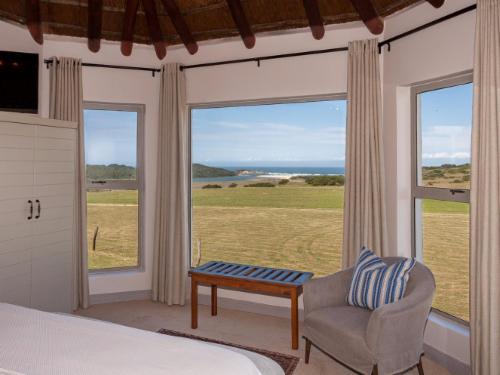 Fort D' Acre Reserve is a private game reserve situated next to the mouth of the Great Fish River. It is 25km from Port Alfred and boasts beautiful views of the bushveld and the coastline. This stylish thatched Bed & Breakfast lodge is elegantly furnished. It includes three luxurious suites and a twin room. The rooms have en-suite bathrooms and offers sweeping views of the natural surroundings including the ocean and reserve. Guests can relax in the beautiful, mature gardens around the lodge. or lounge beside the swimming pool. The property also has a wedding venue