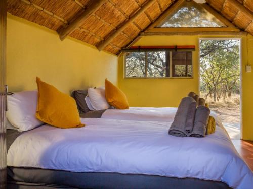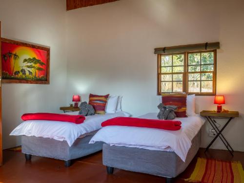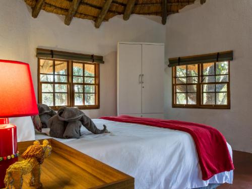 Located in the Greater Kruger Region close to Hoedspruit in the Limpopo Province in South Africa, roughly 500 km from Johannesburg. Franks Bush Camp is specifically situated within the borders of the Guernsey Private Nature Reserve.Wind down in our thatched units that provide the ideal retreat for nature lovers. Each thatched room offers an en-suite bathroom with a shower and access to an outdoor shower. Each unit contains air conditioning, a desk, a hairdryer, tea- and coffee-making facilities and free Wi-Fi access. Watch from the pool as wild game such as zebra, giraffe, and kudu