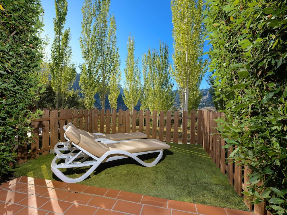 This elegant hotel is located amidst a cork oak forest at the heart of Grazalema National Park in the mountains about 5 km from Grazalema, the most beautiful of the white villages in Andalusia. Ronda is some 20 km from the hotel whilst Jerez, Seville and Málaga airports lie between 1 and 2 hour's drive from the hotel. San Pedro Beach is 65 km away and the beaches of the Costa de la Luz and the Costa del Sol are both just 1 hour and 30 minutes away by car. Public transport departs from stops located 100 m away and shops, restaurants, bars, pubs and nightclubs are to be found within 4 km of the hotel.//Built in 2002, this hotel comprises 4 floors with a total of 77 rooms and facilities include a foyer with a 24-hour reception desk, a safe, a currency exchange facility, a cloakroom, a lift, a café and a newspaper stand. In addition, there is a bar, a games room, a TV room and a restaurant to take advantage of. Guests may use the conference facilities and free Wifi access in common areas and there is a car park and garage facilities available to those arriving at the hotel by car. There is a bicycle storage and hire service on offer and younger guests may let off steam in the hotel playground as well as participate in kids' club activities.//The welcoming rooms each come with a bathroom with bath and hairdryer, a direct dial telephone, satellite TV, a minibar, air conditioning, central heating, a hire safe and balcony or terrace.///Leisure options include a swimming pool, whirlpool and a sun terrace with sun beds and parasols laid out ready for use. Sports enthusiasts may go canoeing, horse riding (extra charge) or hire mountain bikes as well as go on a special jeep tour. The resort offers entertainment programs for adults and children, with activities related to the culture and traditions of Andalusia.//Half Boad reservations into 24 th December or 31 st December, will be included Christmas Eve Gala dinner or New Years Eve Gala dinner respectively.
