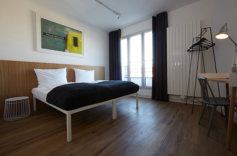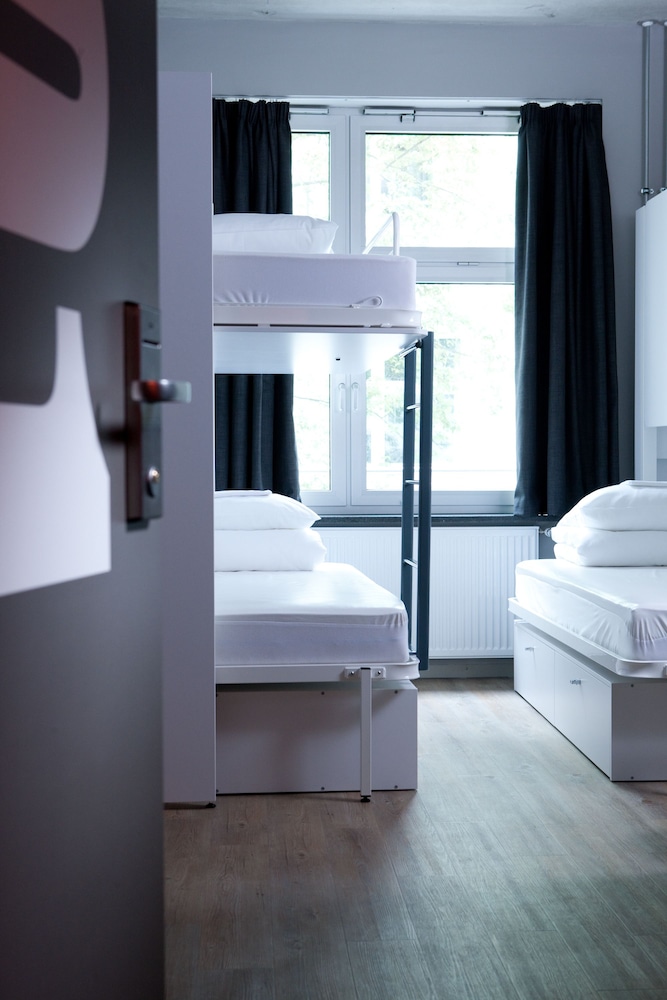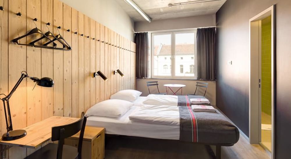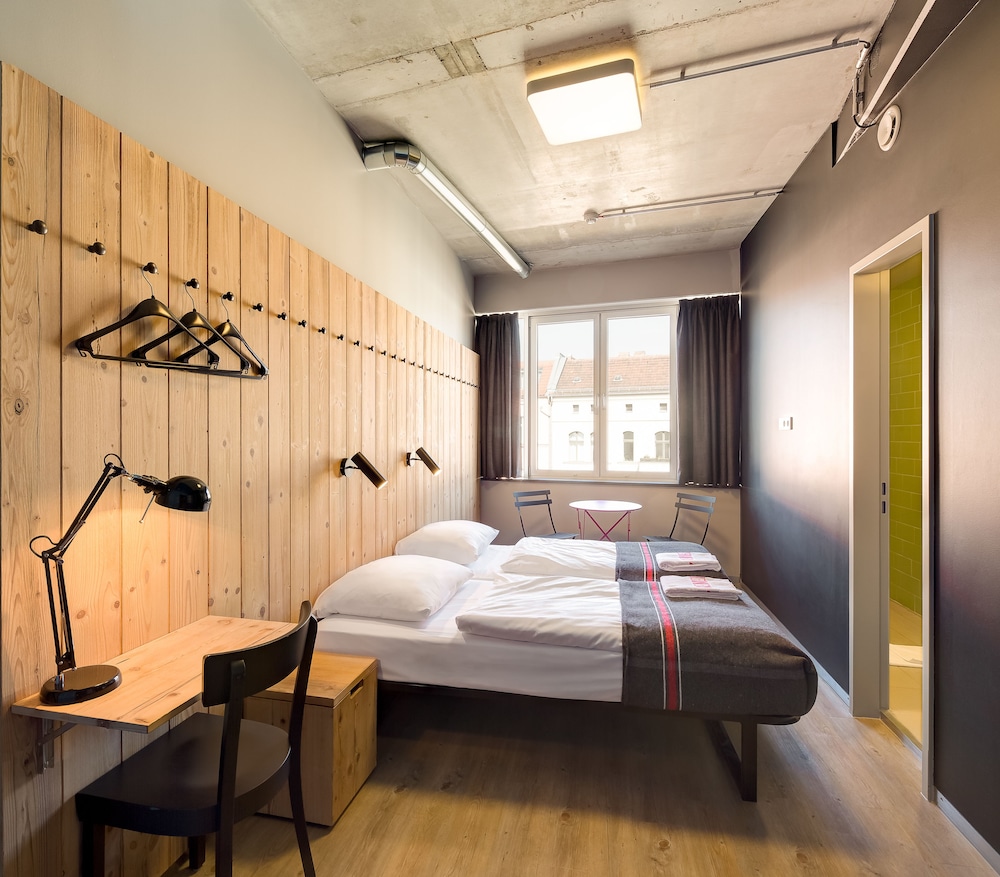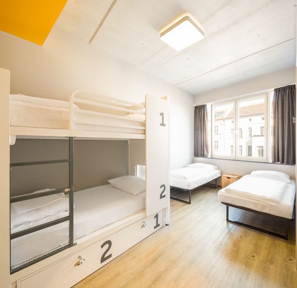 Hostel facilities and service include: 24-hour reception, bar, café, outdoor courtyard, travel shop, bike hire, canteen, library, chill out area and event space. Free WIFI connection throughout the hostel. Self-service laundry facilities available (extra charge).All bedrooms and dorms have private bathrooms with WC/shower, wash basins and bed linens.Twin rooms are equipped with bedside lamps, desk and chair, full-length mirror, fluffy towels, power sockets (EU adapter only).Premium twin rooms are equipped with bedside lamps, desk and chair, full-length mirror, hair dryers, complimentary toiletries, complimentary water and snacks, fluffy towels, power sockets (EU adapter only) and free late check-out (1pm).Triple /Quadruple rooms are equipped with twin beds and/or bunks with privacy boards, handy lock-up storage, full-length mirror and power sockets (EU adapter only).Shared dorms do feature bunks with privacy boards, handy lock-up storage, full-length mirror and power sockets (EU adapter only). Towels can be added at extra charge.Shared female dorm is equipped with bunks with privacy boards, dressing tables, hair-dryers, toiletries, full-length mirror, magazines, handy lock-up storage, reading lights, power sockets (EU adapter only). Towels can be added at extra charge.Check in time is at 14.00 h and check out time is before 10.00h.**Note: Under 18s need to be accompanied by an adult and stay in a private room.Address: Oranienburger Strasse 65, 10117 Berlin, Germany.