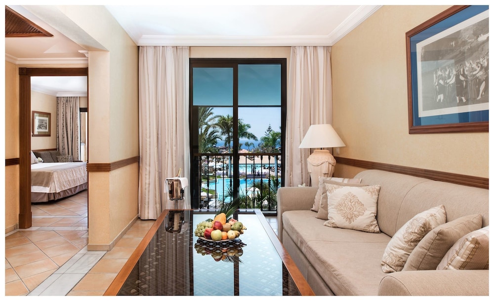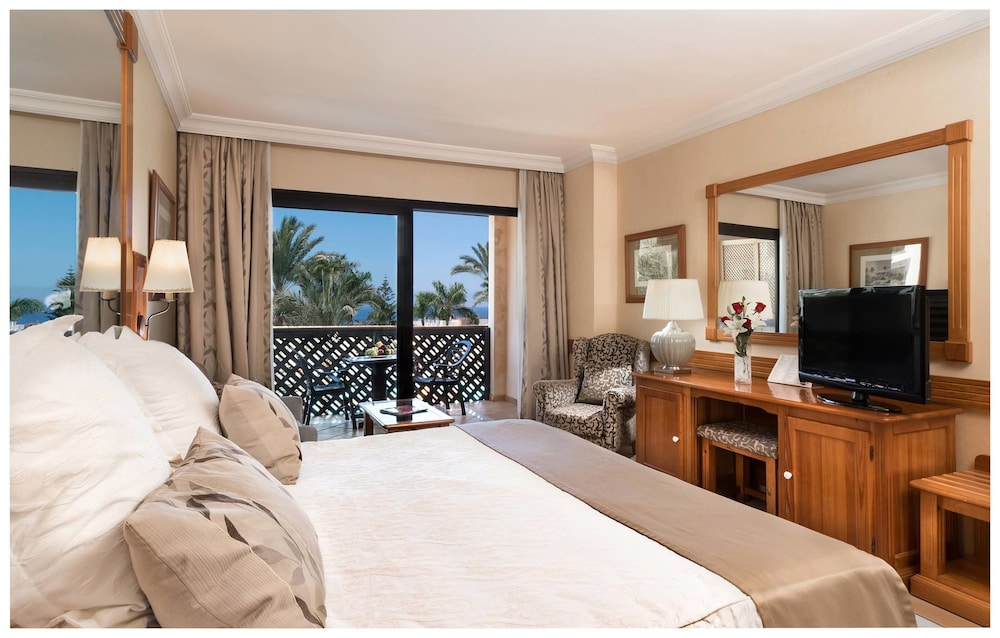 Enjoying panoramic views over the Atlantic Ocean, this elegant hotel is situated in an exclusive area of Costa Adeje. The golden sandy beaches of Playa del Duque and Playa de Fañabé are both only 500 m away. The hotel features various outdoor pools, several restaurants and bars, gym and wellness center. The Magma Conference Center is within walking distance, the international airport of Tenerife South is 20 km away.