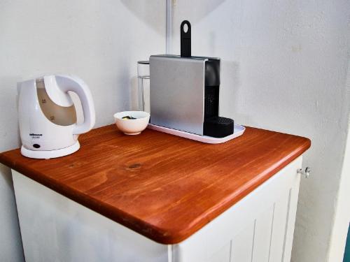 The Clamshell Suite is downstairs and comes with its own entrance and a garden view. The suite comes equipped with a Queen-sized bed, a charming bathroom with a bath and a shower, a TV with DStv, a minibar fridge and a tea, Nespresso coffee machine and rusk station.