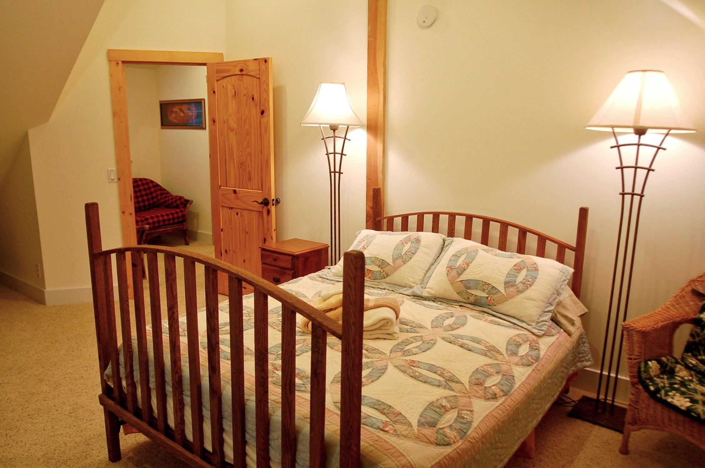 Glacier Springs Cabin #12 - Newly Restyled - Now with Ductless A/C and Heating and an EV ChargerThis newly restyled 2-story, 2-bedroom, 2-bath family vacation cabin features a covered front porch and a brand-new rear deck and BBQ. Inside, the first floor living area features new furnishings, a new heat and air conditioning(!) system, a freestanding gas fireplace, and a new flat screen Blue-Ray/monitor. The combination kitchen and dining area features a dishwasher, breakfast bar and separate dinette, and a laundry cubby with a stack washer/dryer. Also featured is one bedroom with a ful