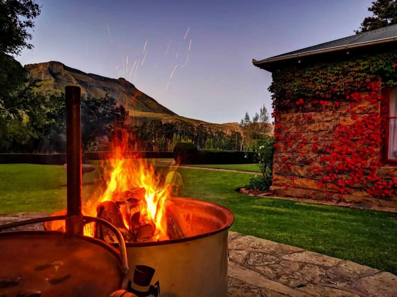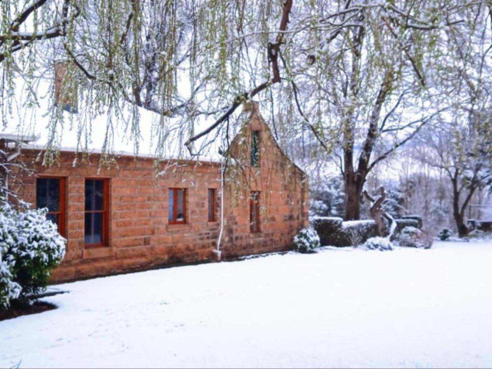 The 150 yr old house known as the Old House is built in part of smooth cut sandstone and in part (new section) of locally rough hewn sandstone. It is located within a 2.5 hectare formal English garden surrounded on 3 sides by steep-sided basaltic Drakensburg Range.