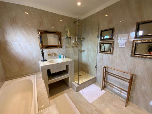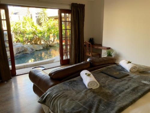Goblin’s Mead is centrally situated in a quiet very safe cul-de-sac, in the heart of the well-established, leafy suburb of Edgemead. A few short km's to Panorama Hospital, Durbanville wine route, Century City, Montage Gardens, Blouberg, V&A Waterfront to mention a few.Goblin’s Mead consists of 2 self-contained self-catering houses next to each other. # Goblins Mead No 20, the main house with 4 en-suite bedrooms and a magical tropical pool # Goblins Mead No 10, with 3 en-suite bedrooms and plunge pool. Goblin’s Mead No 20, offer's spacious and elegant