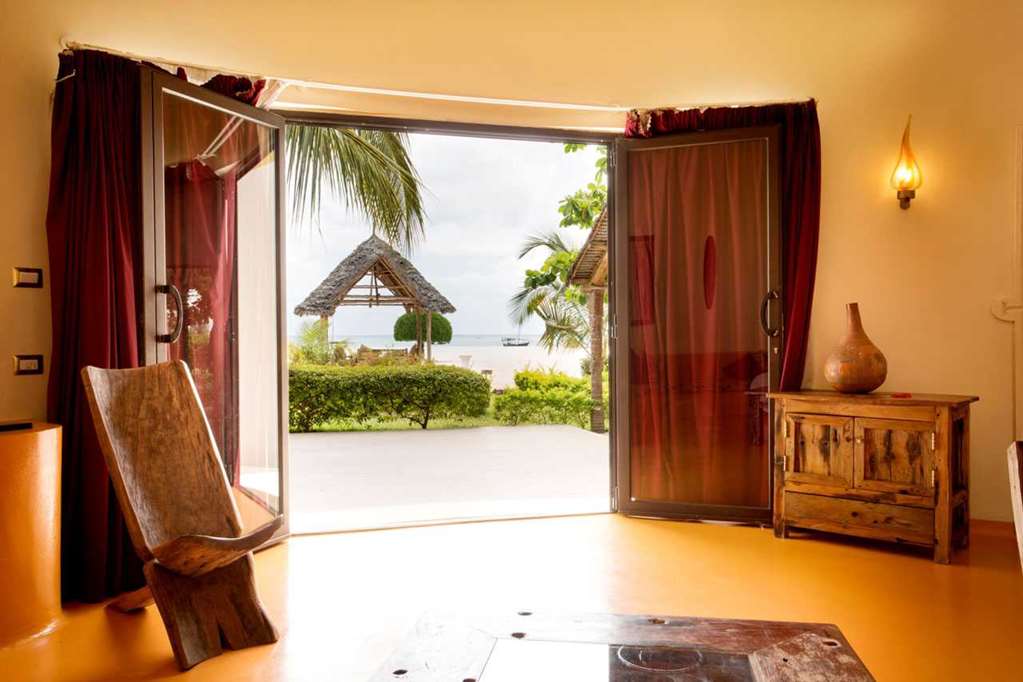 The Deluxe Garden Rooms and some of the Deluxe Ocean View Rooms are located on the ground floor and offer views of the tropical gardens or ocean, while the other Ocean View Rooms are located on the first floor with a balcony. The Beach Suites are located on the ground floor and are situated near the beach. The Luxury Villas are located on the beach and each unit is designed with a different style in mind; one is African style, one Italian style and the third one is decorated in Arabian style. The Villas each offer a living room and a wide veranda with a Jacuzzi, as well as a private beach tent.