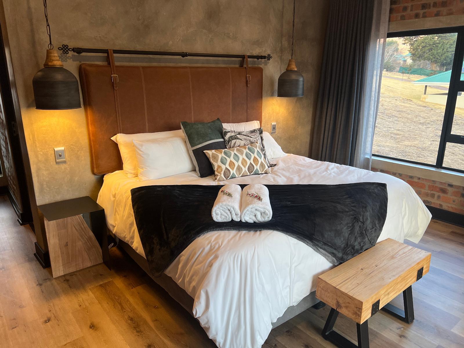 Golfers View @ 101 is a stunning, spacious villa located in the secure Clarens Golf & Leisure Estate in Clarens. This comfortable solar-powered holiday house offers an ideal base to explore the town's attractions and guests have access to the estate's golf course.This fully furnished double-storey home comprises four bedrooms and four bathrooms. The fully equipped kitchen features a gas stove and oven, ample crockery and cutlery, a dishwasher, a washing machine, a tumble dryer, and other appliances for convenience. The upstairs lounge leads out into a balcony with a built-in BBQ/br