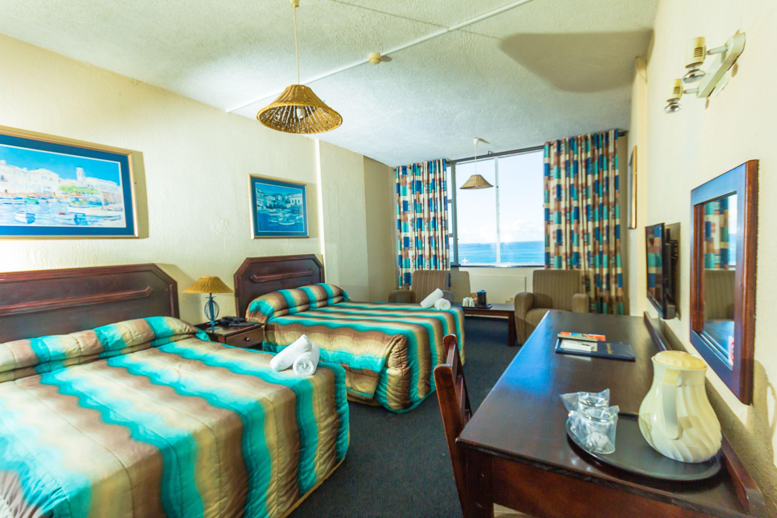 The Gooderson Beach Hotel provides guests with a comfortable stay in a great location that is ideal for exploring the city of Durban.The hotel boasts 112 rooms, which all feature private bathrooms, air-conditioning, DStv and tea and coffee facilities. The abode also offers guests two restaurants, a cocktail bar, room service, 24-hour front desk staff, conferencing facilities, Wi-Fi Internet access, an airport shuttle service and 24-hour parking and security. The two restaurants, Pier 107 and El Cordoba Buffet, and Harpoon Harry’s Cocktail Bar offer a relaxed, family-fri