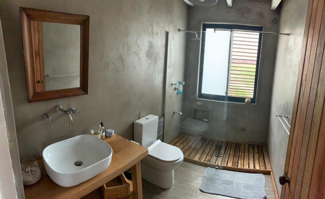 There is an open-plan living area with a lounge, dining area and kitchen. The house is private and is ideal for a family.