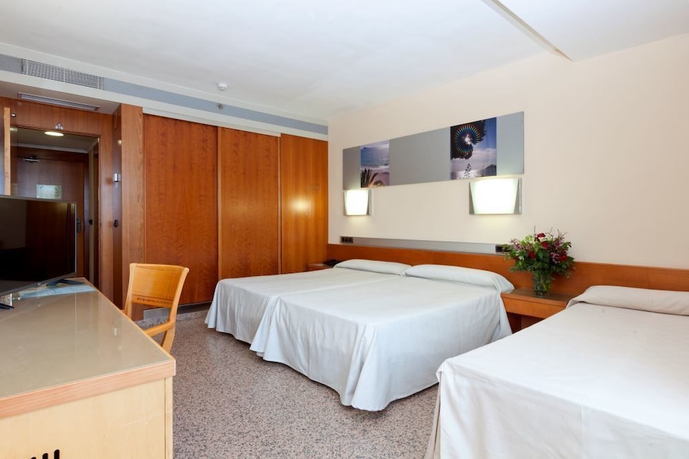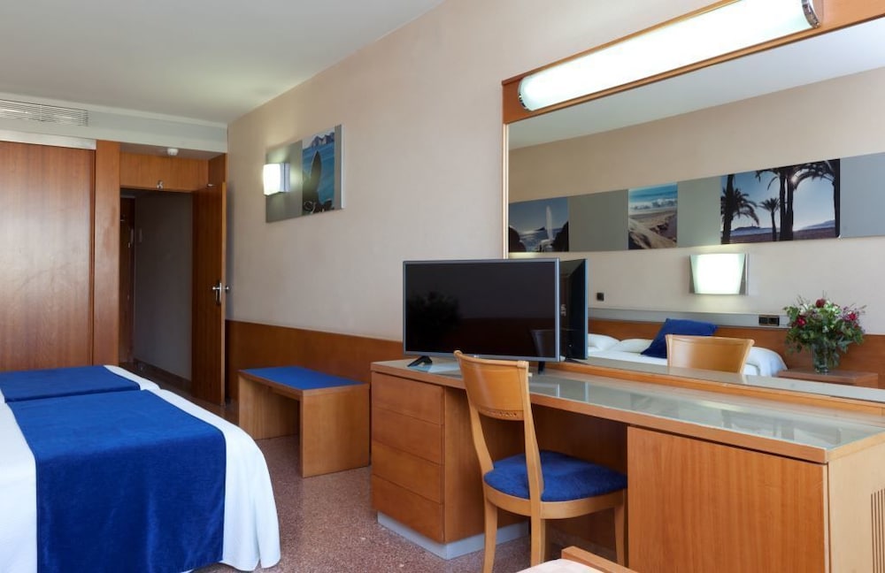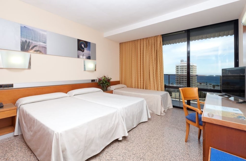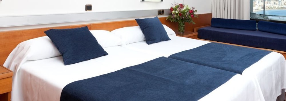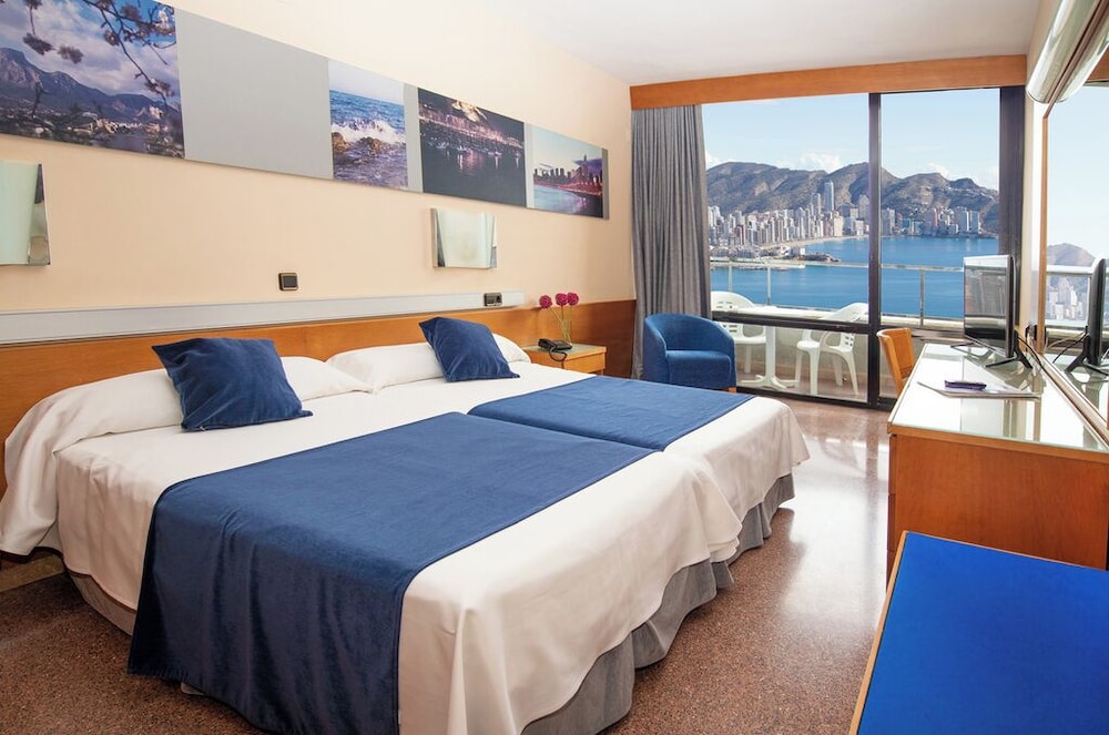 *This modern beach hotel is situated at Cala de Benidorm, just 50 metres from the restaurant and bar area. It is just a short 400-metre walk to the beach; the nearest golf course is just 5 km away and it is 3 km away from Terra MÃtica and Terra Natura theme Parks.*There is also a hairdresser, a games room, a TV room and a nightclub. In addition, guests are provided with an air-conditioned restaurant with highchairs for infants. Business guests may also make use of the wireless Internet connection as well as the conference room. Laundry and room services are available as well as medical assistance.