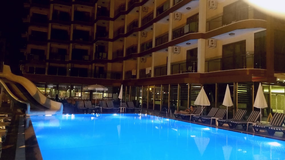 This hotel is set overlooking the Mediterranean Sea, in Alanya. The hotel is situated within easy access of many of the area's most prominent attractions. The Dim River and Alanya Castle are just 4 km away. Antalya Airport is just a 2 hours' driving distance from the hotel. This wonderful hotel appeals to business and leisure travellers alike. The guest rooms exude elegance and character, offering visitors a calm, relaxed ambience in which to completely unwind. Guests can sit back at the pool bar with a refreshing drink. The hotel features a seemingly boundless range of facilities and services, ensuring a high level of quality, to impress even the most discerning traveller.