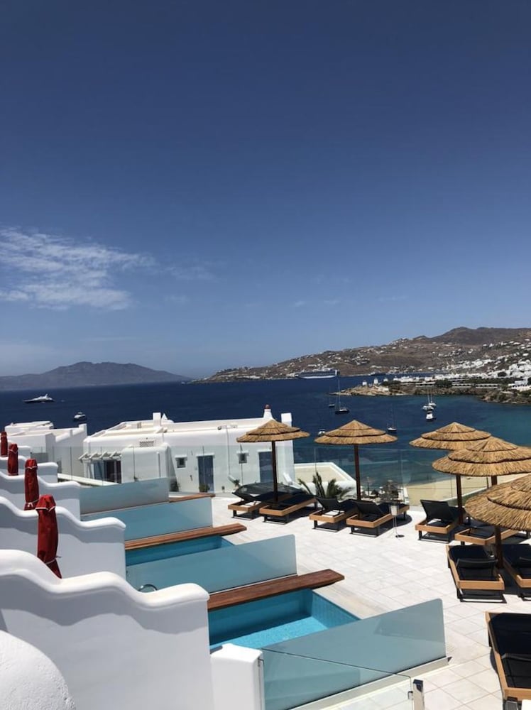 Facilities and services include wireless Internet access, parking, gym, bar and swimming pool.Rooms feature air conditioning, safe, TV, balcony/terrace, fridge, minibar (extra charge), coffee/tea maker, hairdryer, wireless Internet access and telephone.Please note that some of the above facilities may be closed due to weather / seasonal conditions.Note: Reception with limited opening hours. Please advise flight number and estimated arrival time when booking this hotel.Address: Megali Ammos, 84600 Mykonos, Greece.