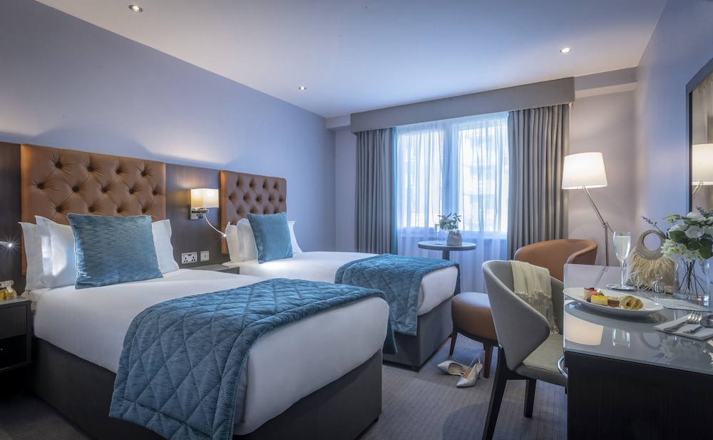 The Grand Canal Hotel is a four-star hotel located in Dublin opposite Grand Canal Dart Station and a 15-minute walk from the city centre.The Grafton Street shopping district Bord Gais Energy Theatre Aviva Stadium Trinity College Irish Financial Services Centre as well as the RDS Convention Centre Dublin and the 3Arena are all within easy reach of this charming family-run property.Modern rooms at the contemporary style Grand Canal feature free high-speed WiFi and interactive Smart TVs. Deluxe rooms are also available.Guests can enjoy a selection of craft beers and food in the Gasworks Bar or have a meal in the hotel lobby. Canal Express serves a selection of hot and cold beverages smoothies sandwiches and pastries available to enjoy in the lobby or taken to go.The Grand Canal Hotel also has a fully equipped gym.