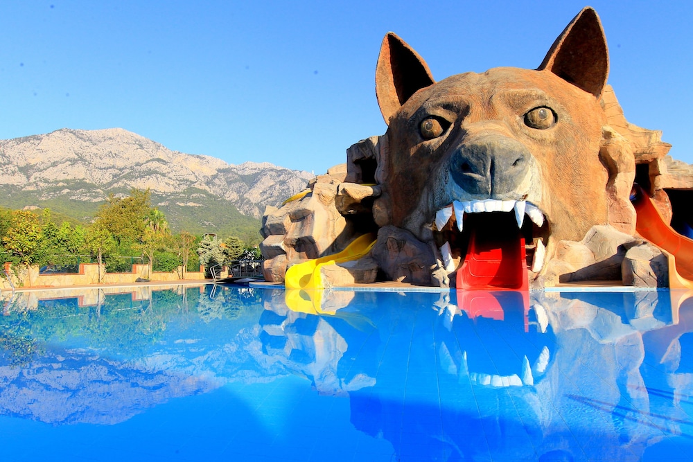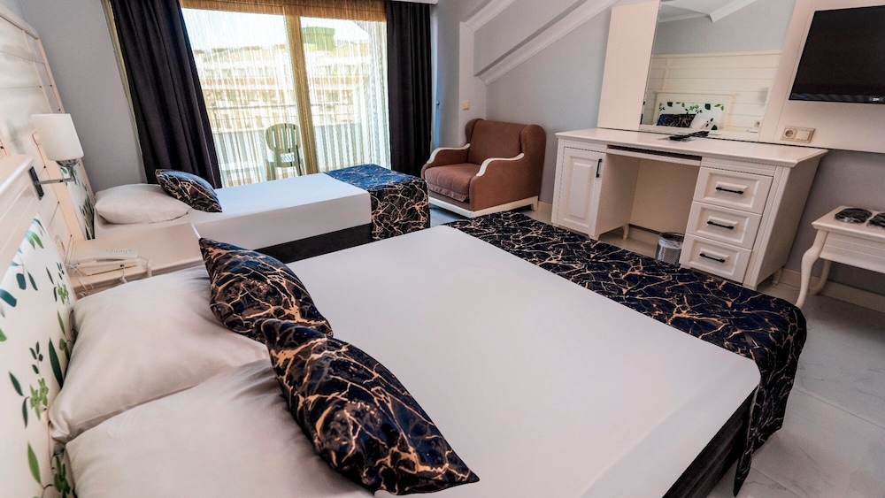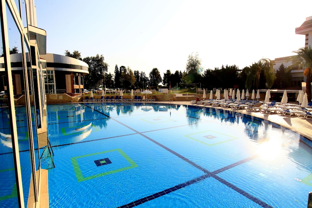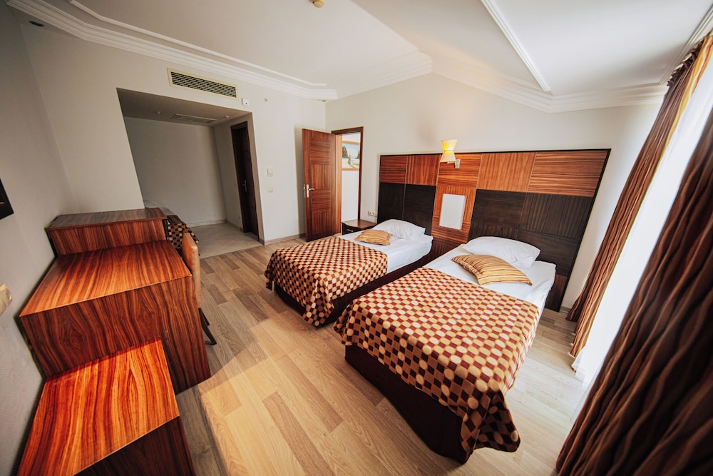 The Grand Haber Hotel is located near the long beach and a short walk from the center of Kemer. Antalya is 45 km away and the airport is approximately 60 km from the hotel.At the hotel there is a reception, bars, restaurants, disco, amphitheatre, conference rooms and event facilities, boutique, newsstand and mini market, sports & animation program, children“s village, sports center, tennis courts, games room with billiards, internet and video games (with extra charge), Spa with Turkish bath, sauna, fitness centre and massages service, hairdresser and beauty center (with extra charge), indoor pool, children“s pool, outdoor pools with water slides, sun terraces and gardens. The rooms are equipped with bathroom/shower, hairdryer, telephone, TV, Internet connection (with extra charge), mini bar, safe, air conditioning and balcony/terrace. 24 h room service and laundry service are available (both with extra charge).**The All Inclusive-concept includes all meals (breakfast, lunch, dinner and snacks) and mealtime drinks such as soft drinks, beer, wine, water and alcoholic drinks, all of local brands. Drinks are served from morning until late evening (approx until 22.-24.00 hrs). Opening times vary between different hotels. In certain hotels the activities program is also included.**Address: Sehit Polis Cemal Ilgaz Cad. 8, 07980 Kemer, Turkey.