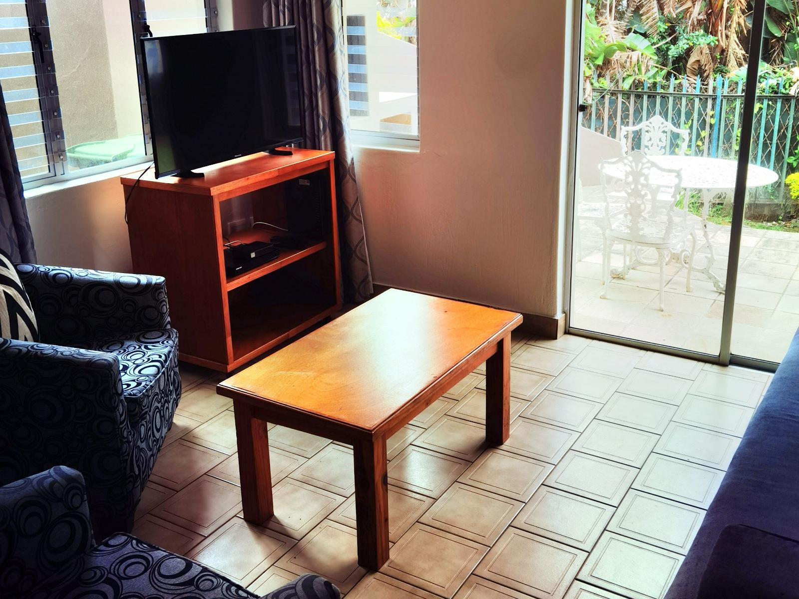 Chaka's Cove 77 has one bedroom with a king bed and an en-suite shower bathroom. The kitchen is fully equipped with an oven, microwave and refrigerator. The balcony offers outdoor seating and an ocean view. The complex boasts a sparkling pool, and braai areas, and is conveniently located just 2 minutes from Shaka’s Rock Beach.
