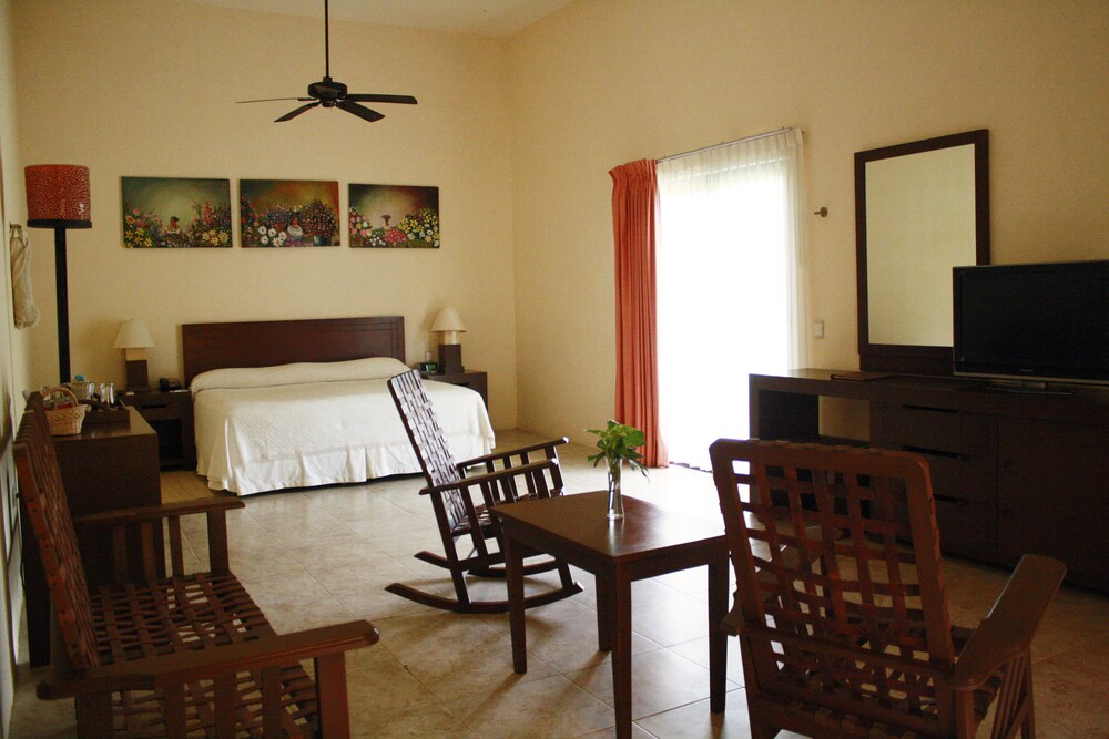 This charming hotel is situated in Mérida city, close to Periferico Avenue and Street 65. It is just 15 minutes from the downtown of the city, where you will find many restaurants, bars and nightclubs. The nearest shops are just 5 minutes from the accommodation, and the beach can be reached in 30 minutes by car.This 18th-century hacienda has large, lush gardens and offers an environment of peace and relaxation. It combines Yucatán culture, history, architecture and ecology.The establishment is suitable for families and has 50 rooms, air conditioning, 24-hour reception, a newspaper stand, a bar and restaurant. Conference facilities are also available. You can enjoy free Wi-Fi in public areas and free parking.The spacious rooms feature architectural details and traditional Yucatán furniture. All rooms come with a bathroom with a shower and a hairdryer, as well as double/king-size beds, direct dial telephone, satellite TV, radio, Internet access, tea and coffee making facilities, ironing set and safe. Individually regulated air conditioning and a balcony/terrace also feature.In the hotel there are 2 outdoor pools. Guests can relax in the steam room or with a massage or spa treatment, and a gym is on hand for those wanting to work out. Guests looking to play a round of golf can head to the nearest course, just 30 minutes from the hotel.