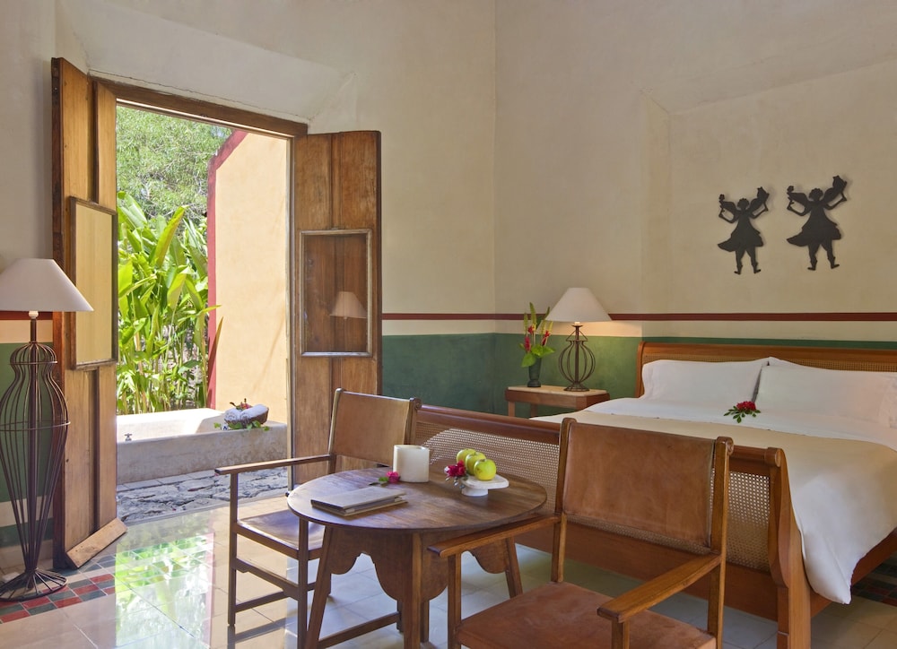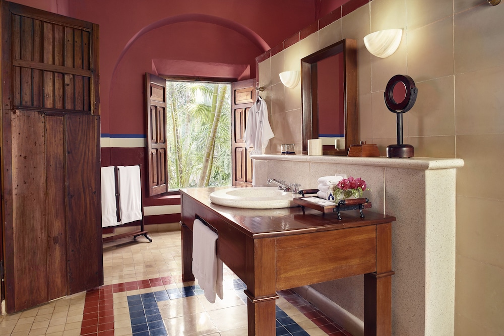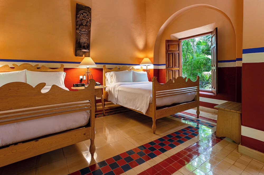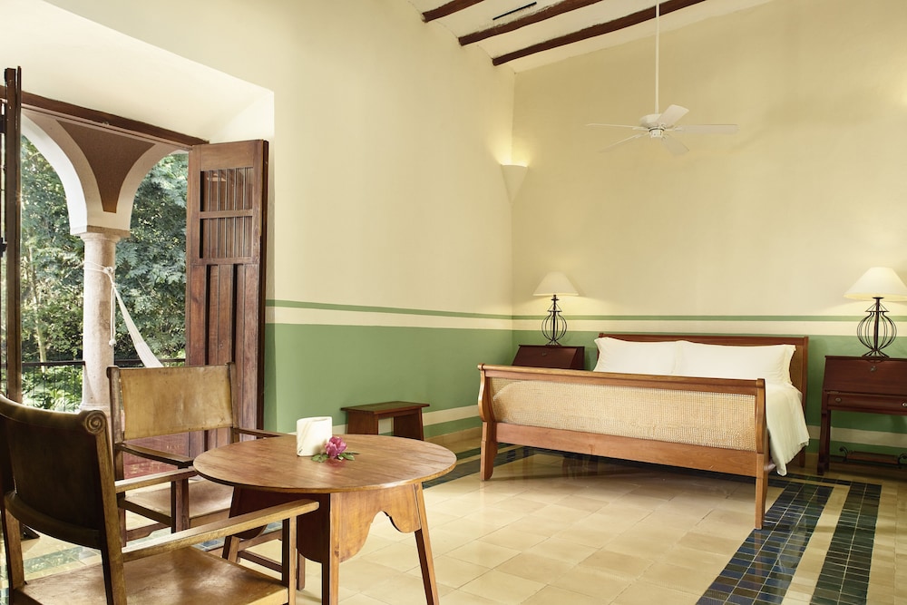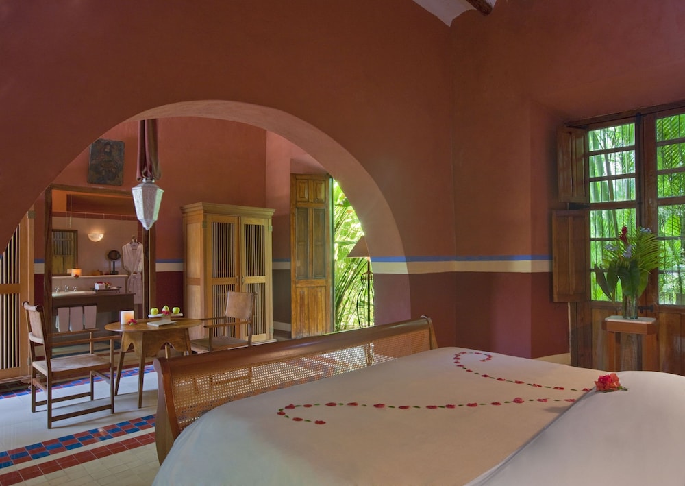 This boutique hotel lies on the Yucatan Peninsular approximately 38 km from Mérida airport. The hotel provides the ideal destination for all those wishing to explore the fascinating Maya ruins, colonial monasteries and crystal clear Cenotes. The hotel also lies just a short distance within the archaeological site of Chichén Itzá. The centre of Tixkokob lies less than 19 km away.This country house has been fully restored and transformed into an exclusive full-service hotel on a site where a colonial plantation once stood. There are a total of 15 rooms of which 8 are suites available to guests. The accommodation is surrounded by an impressive courtyard in which guests are able to feel they are diving into a world of the past. Guests will find the hectare-large grounds with an orchid as well as the chimnea, which was used in the nineteenth century for the production of sugar cane, most impressive. The hotel features a lobby, air conditioning, a 24-hour reception, a currency exchange facility, a conference room, a bicycle hire service and a playground. Also to be found in the hotel is a lounge room, a bar, a restaurant, a conference room, an Internet connection, a mail service and a library. Guests are additionally offered support with personalised tours as well as an excursion package including towels, disposable towels and waterproof clothing. Further facilities include room service, laundry and bedtime services. Car parking facilities can be found outside.The rooms are decorated with flowers and guests will find a fruit basket awaiting them on arrival. Each of the rooms comes with an en suite bathroom with shower, a hairdryer, bathrobes and pyjamas. The accommodation also features a lounge, a direct dial telephone, satellite/ cable TV, a radio, a hi-fi stereo system, high speed Internet access and air conditioning. A minibar, 1 king-size bed or 2 double beds, a hire safe and a terrace also feature as standard.