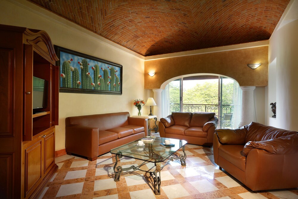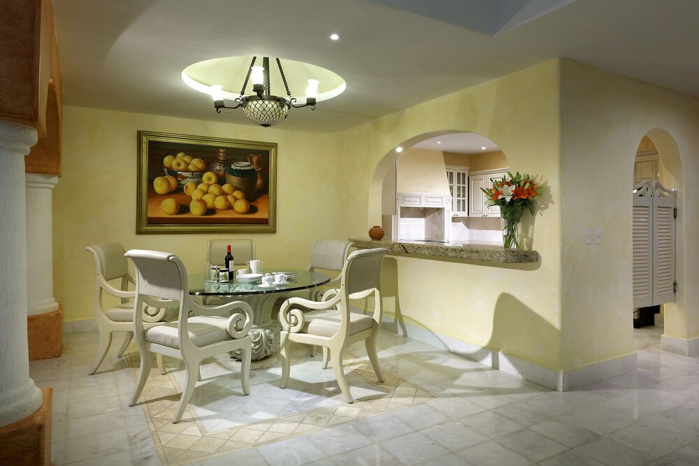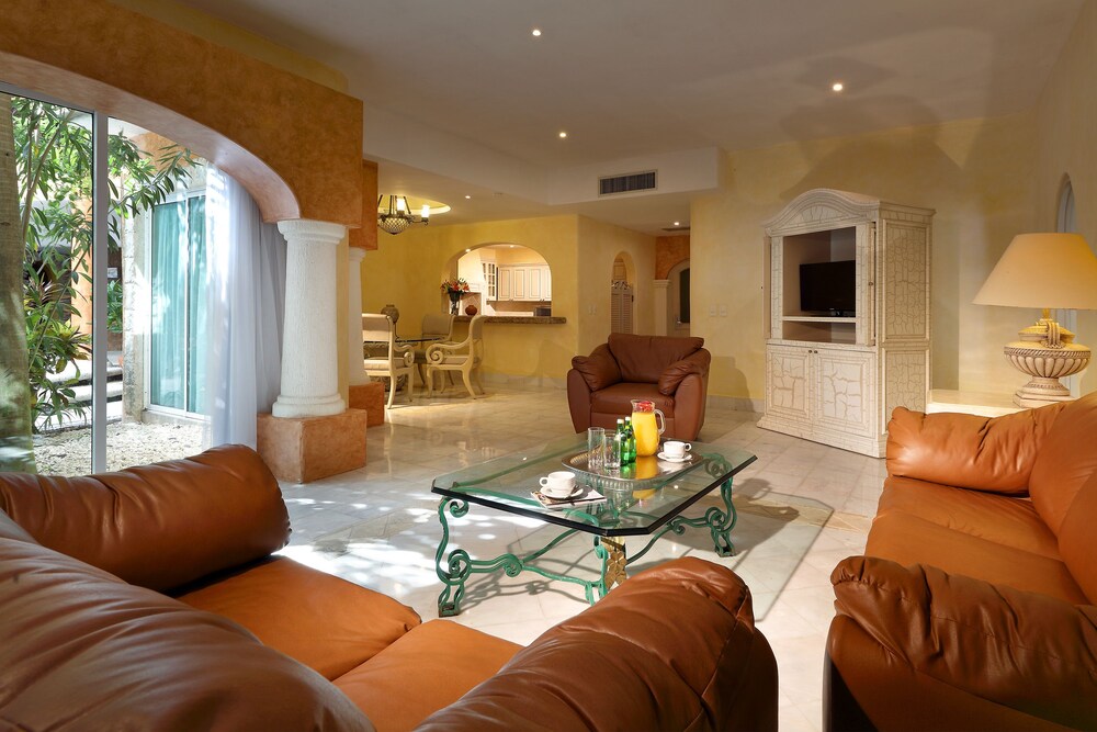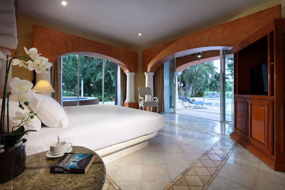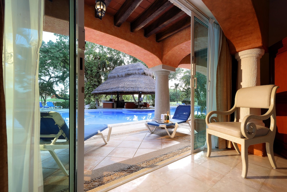 Eurostars Hacienda Vista Real has 77 luxurious Suites with an incomparable view of the amazing golf course, which was designed by Robert Von Hague. All villas in this hotel are finely furnished and decorated. Each suite offers central air conditioning, satellite T.V. and telephone. Finishing details tastefully combine wood, marble and granite, creating an irresistible atmosphere of tranquility and comfort. Additional services that Hacienda Vista Real has to offer are: designer swimming pool with bar service, rentals and discount green fees at the golf course. Hotel doesnt have direct access to the beach but a taxi cab charge about 7 usd and the beach club ares is 10 mintues away. Breakfast is included in room rate.