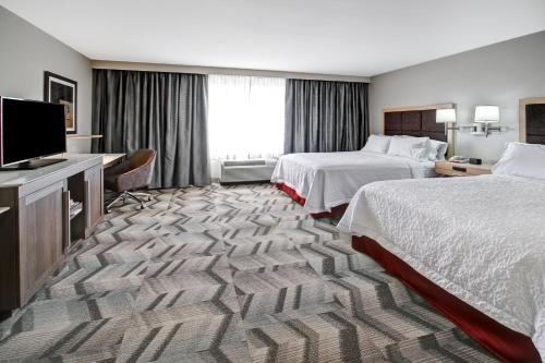 Complimentary morning goodies Wi-Fi and parking combine with a year-round pool and a location near the Canalta Centre at the non-smoking Hampton Inn and Suites Medicine Hat AB Canada. The six-story Hampton Inn and Suites Medicine Hat AB Canada furnishes 125 rooms with free Wi-Fi flat-panel TVs coffeemakers and mini-fridges. A complimentary breakfast buffet is served each morning. Guests can also purchase treats in the 24-hour shop. Glide down the waterslide into the year-round heated indoor pool and take advantage of extra perks including the business and fitness centers. The hotel offers 24-hour front desk reception and free on-site parking. Pets are allowed. Guests find this Hampton Inn off Trans-Canada Highway 1 four miles northwest of downtown Medicine Hat and the South Saskatchewan River. It's a quick 10-minute drive to reach the shops of Medicine Hat Mall. When looking to check out fun-filled events make your way to the Canalta Centre less than a half-mile away. Medicine Hat Airport is four mi