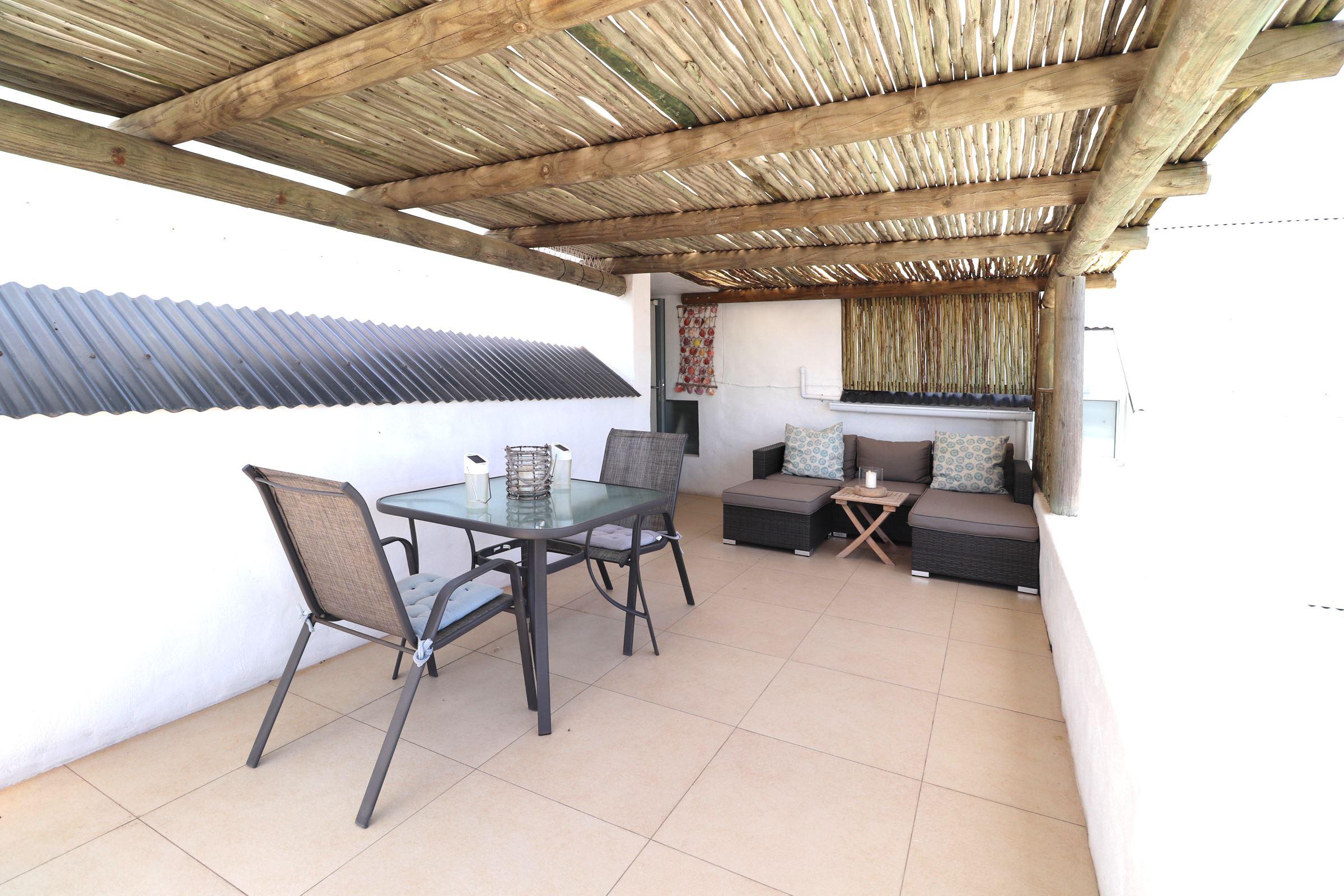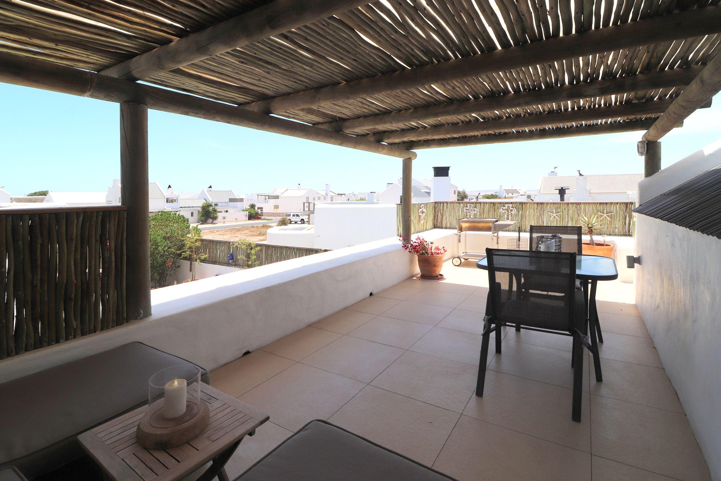 Harvest Moon is a small, yet cosy upstairs unit located in the West Coast town of Paternoster. This lovely self-catering unit is ideal for a couple’s retreat and is located 200 m from the beautiful Paternoster Beach.This upstairs unit offers all the modern comforts and the open-plan living area consists of a kitchen with an electric hob, a microwave and conventional oven, as well as all cutlery and crockery. The kitchen has a small dining table and a large fireplace, and the lounge area has comfortable seating and a TV with limited DStv channels. The unit has a covered patio wit