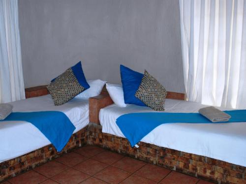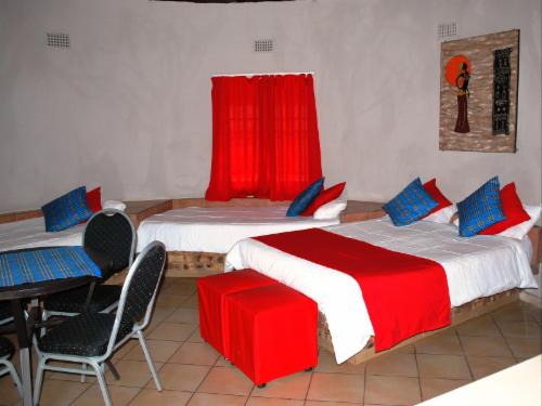 Henk van Rooyen is a lovely resort situated in the wildlife sanctuary, Marloth Park. The resort offers guests the choice of staying in one of the comfortable chalets or rondavels, or make use of the caravan stands situated on the river bank. The chalets and rondawels are furnished with double or single beds and can sleep four to six people. Each of the 10 caravan stands is roofed and each has a private braai area. The upgraded ablution facilities and the scullery room are shared between the stands, chalets and rondavels and consist of showers only. The resort also has a lovely