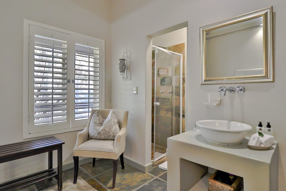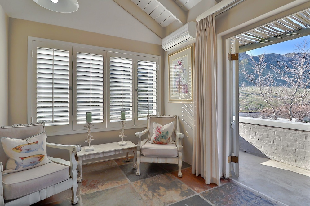 Our sun-drenched swimming pool with its magnificent mountain view is the perfect place to spend a summer’s afternoon, and our private courtyard, overlooked by the Fernkloof Nature Reserve, is perfect for that summer sun-downer.