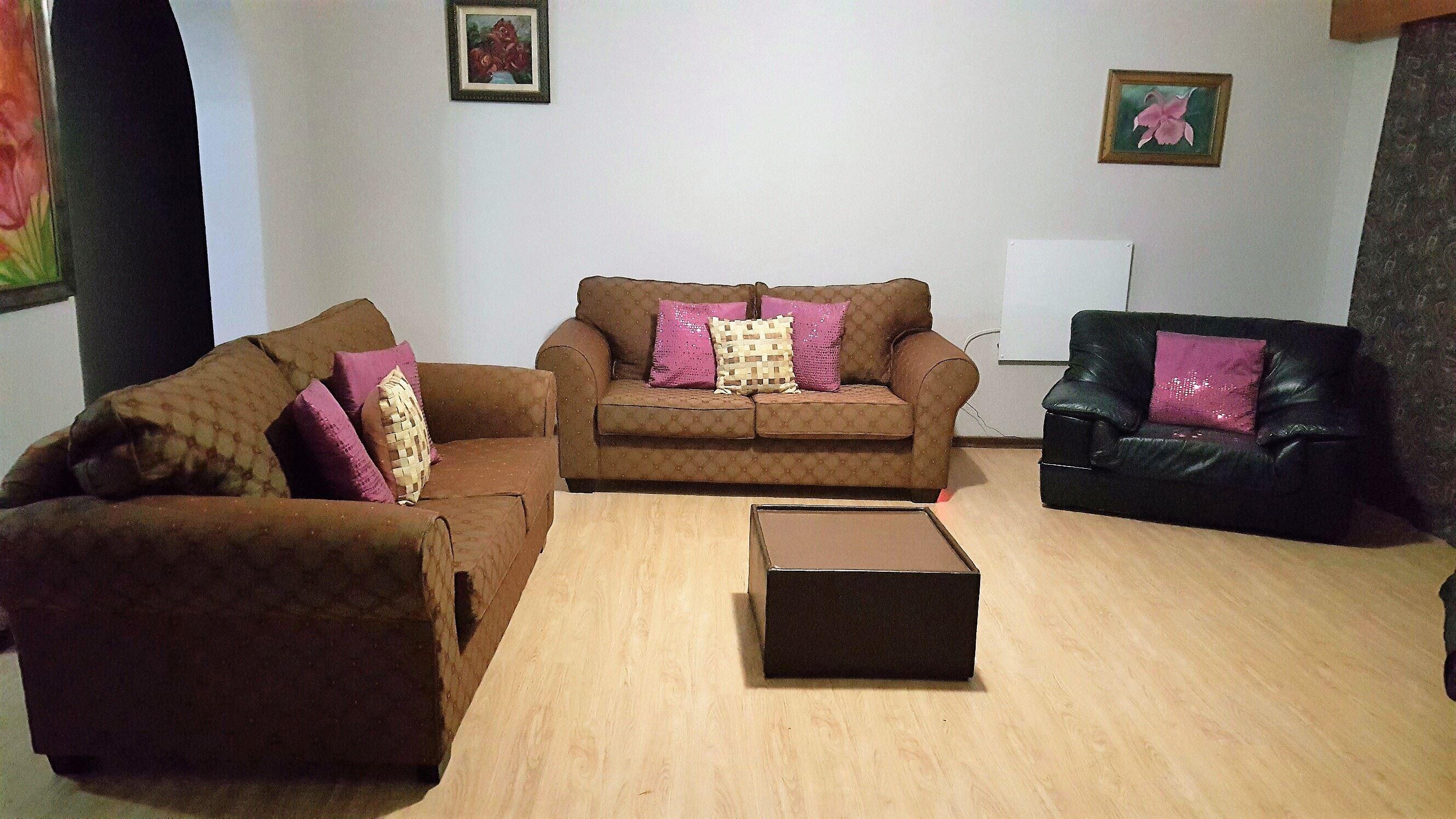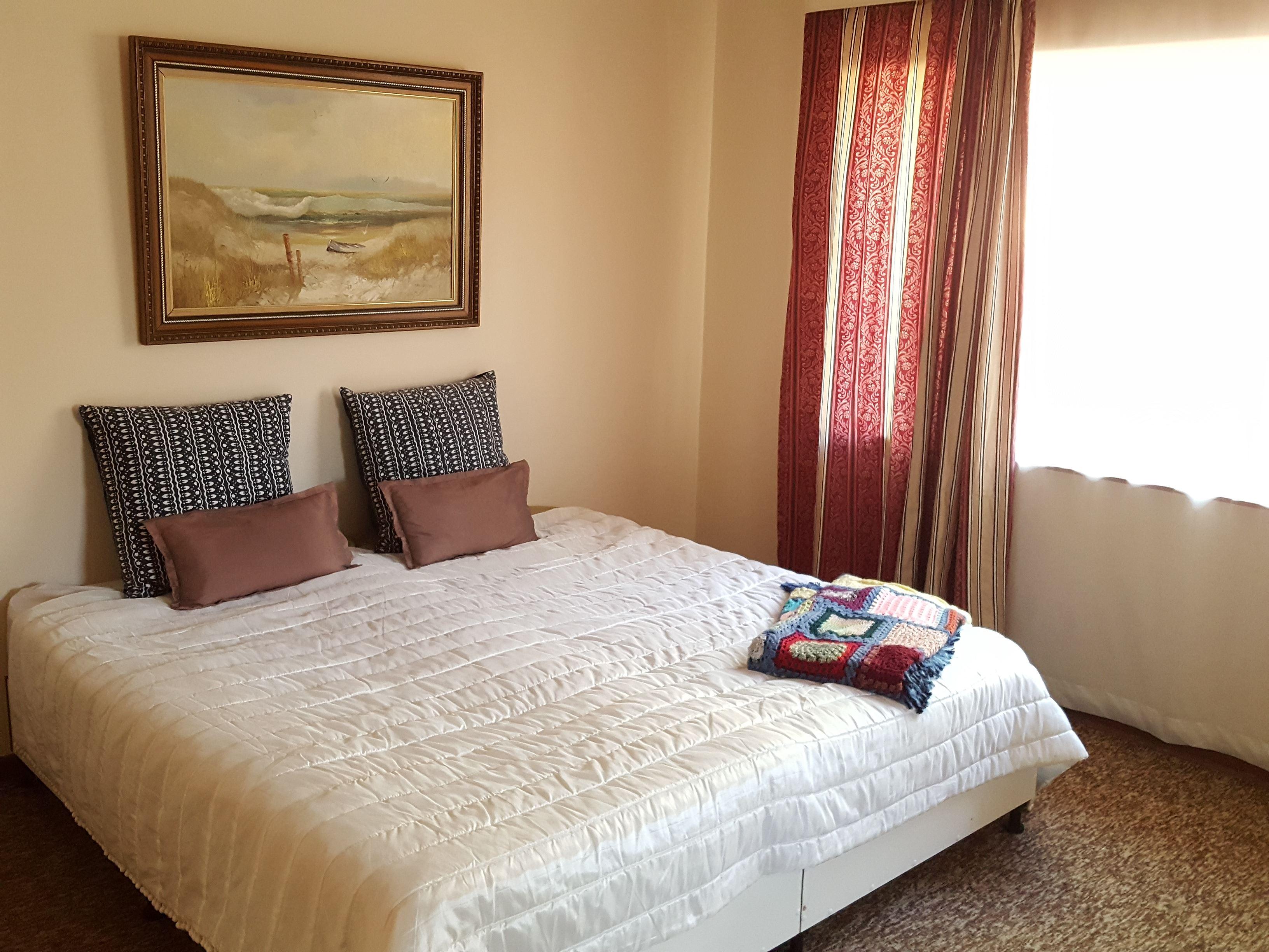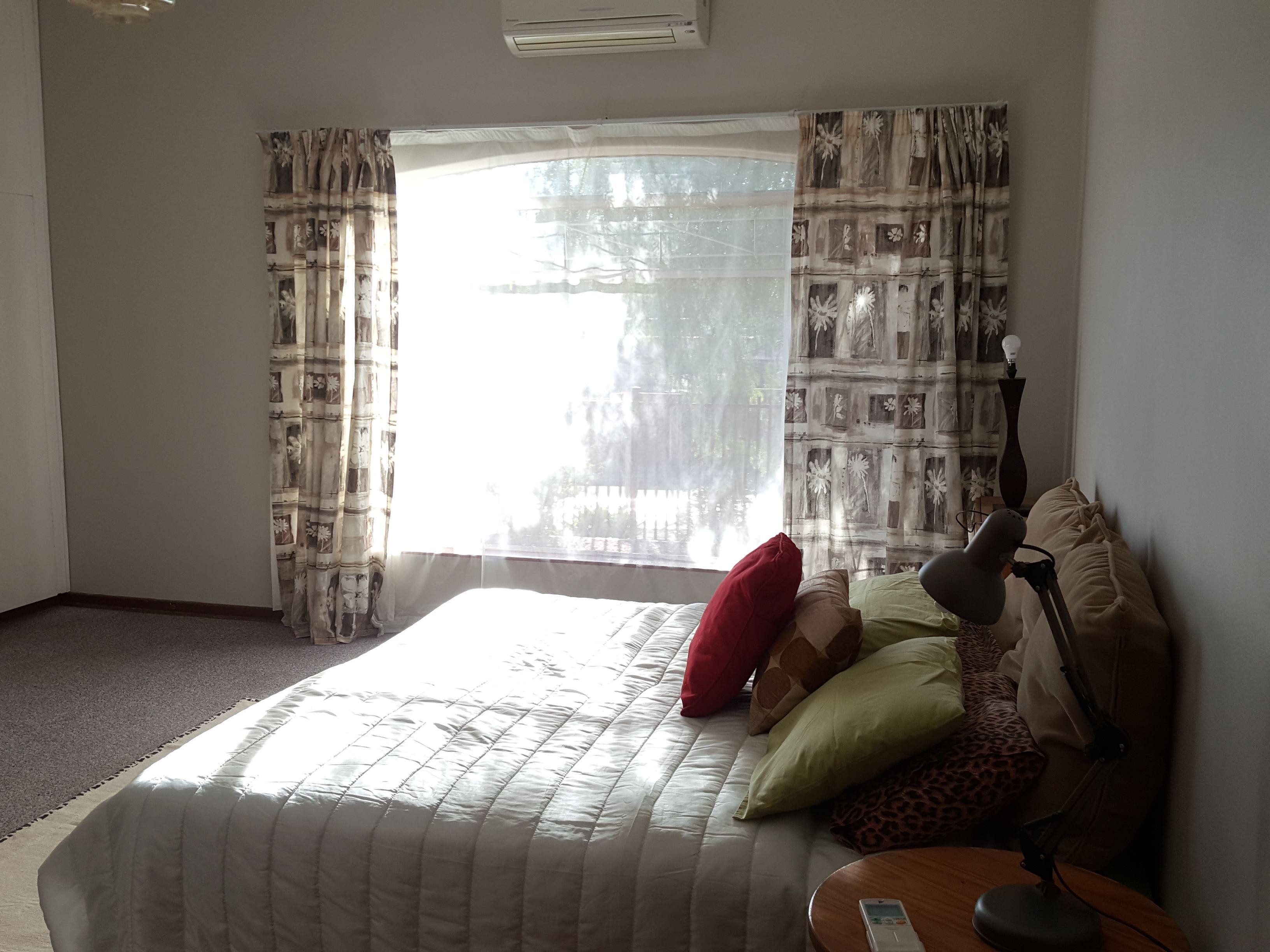 Enjoy your Stay in whole house for the price of hotel room. Hertzog House is a 3-bedroom, 3-bathrooms, fully self-catering house, which is over 250m2. Parking avaliable in front of house or along side of house up to 4 cars. Two of the bedrooms have ensuite bathrooms. There is also 1 main full bathroom and a guest toilet.All bedrooms contain 2 single beds, which are converted to King Size beds or twin. Solar gizer, mostly LED lights, use of grey water for garden our way to conservation of resourses. Cascading garden in the back yard, trees to relax underneath and perfect for a braai.There is pl