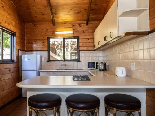 *Our log cabins are free-standing, spacious, and have a private entrance with wooden decks overlooking the natural scenic surroundings of the Outeniqua Mountains. Some cabins are semi-attached and can accommodate a family of 12 if rented together - each with its own entrance.Highlands Lodge is situated in the beautiful Waboomskraal Valley, nearly halfway between Oudtshoorn and George on the N12. The lodge is a small mountain retreat in the Garden Route in the Outeniqua Mountains. The lodge has a very tranquil and natural atmosphere with ample bird life, large lawn areas and indigen