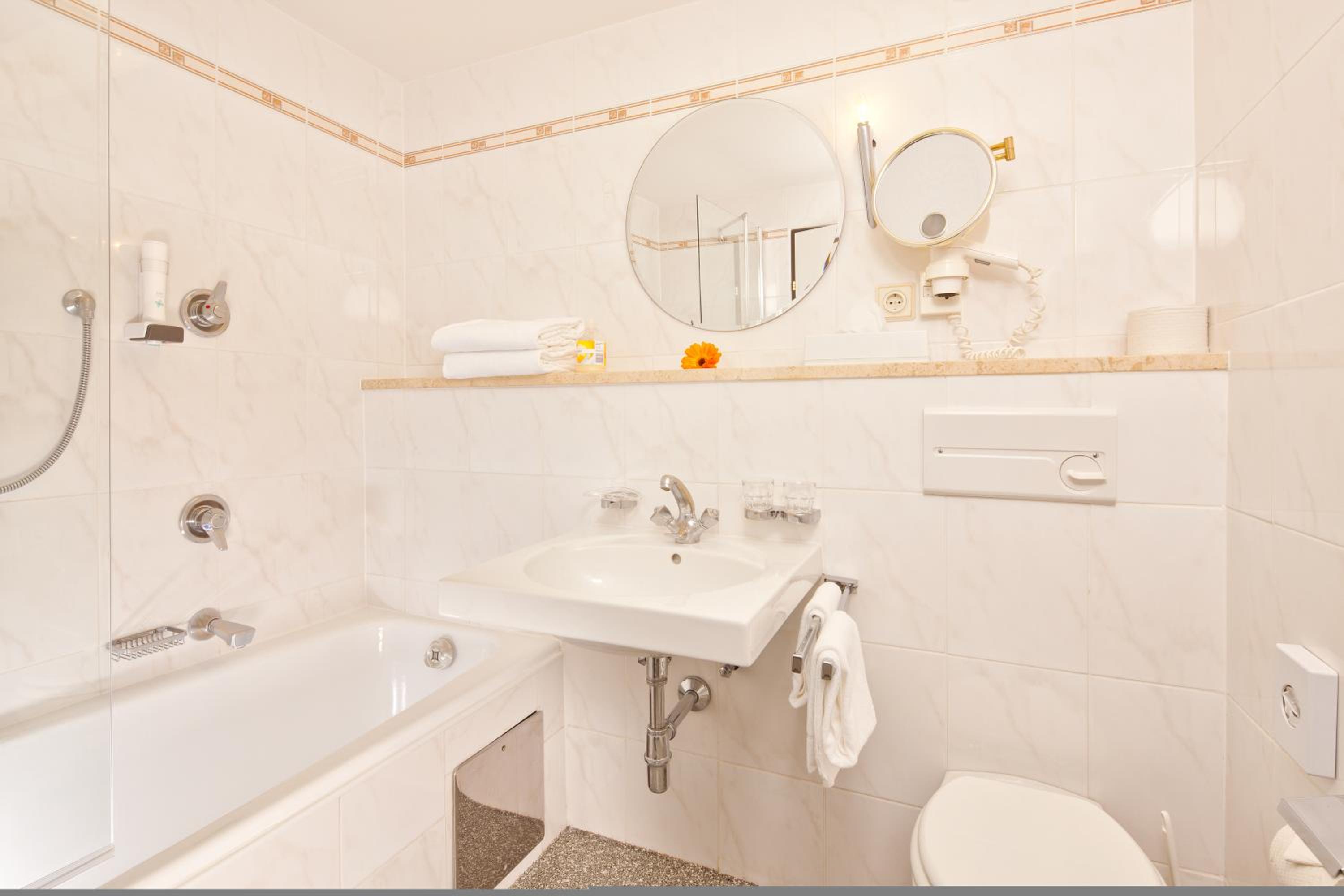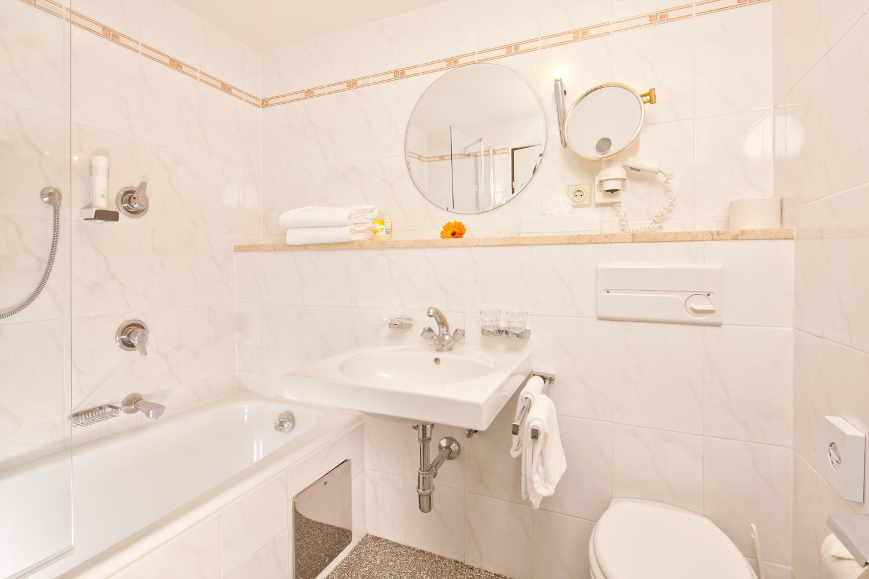 Set on a sunny high plateau in Seefeld, this ski hotel is located in the impressive mountain environment of Tyrol. It offers a direct view of the Seekirchl (lake church), and it is close to the Olympia sports centre. Since the hotel is right at the border of the pedestrian zone, guests can reach the idyllic centre of Seefeld within a few minutes.Well-being, cosiness and atmosphere have always been the focus of the hotel. Facilities include a lobby, hotel safe, cloakroom, lift access, casino, bar and restaurant. Room service and a car park are also provided.The guest rooms are en suite and equipped with shower/bathtub, hairdryer, direct dial telephone, TV and a balcony or terrace.The hotel features a heated swimming pool with a poolside snack bar, a sun terrace, a sauna and a steam room. Guests may take advantage of the massage service or spa treatments or play tennis or golf.Guests can enjoy delicious cuisine in their cosy room or in the rustic dining room of the hotel. A noble wine from the well assorted wine list perfectly rounds off the culinary experience.