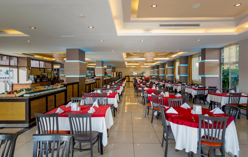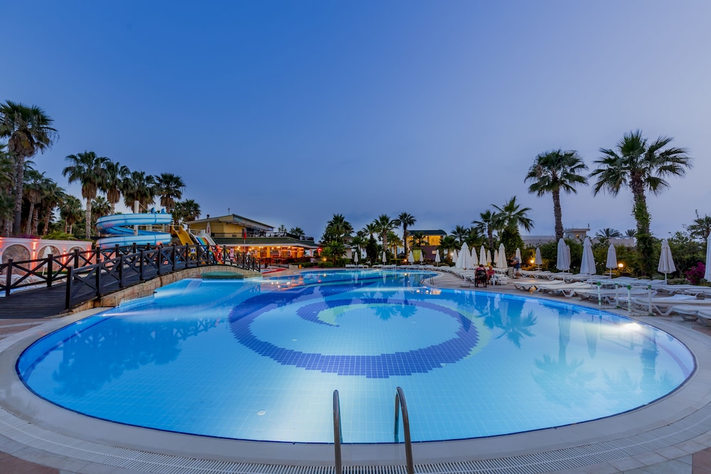 This hotel is located in Okurcular, in the tourist centre of Alara. The hotel is beside a wonderful private beach, close to a selection of shops, restaurants, bars, and nightclubs. There is a bus stop close to the hotel. The hotel also enjoys easy access to the main local attractions and landmarks, such as Alanya Castle, Alanya Dockyard and Arsenal, the Red Tower, Alanya Archaeological Museum and Damlatas Cave.